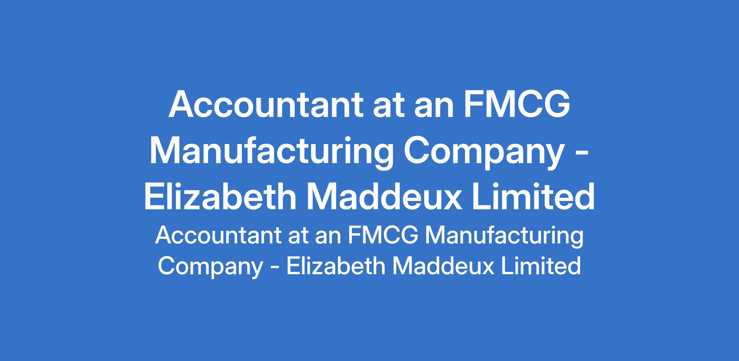 Elizabeth Maddeux Limited - Our client, an FMCG manufacturing company is recruiting to fill the position of: Accountant. The position is located in Abuja (FCT). Salary: N300,000 - N400,000 / month. Interested candidates should possess a Bachelors Degree in Accounting, Finance, or a related fields with 46 years accounting experience, with at least 3 years in a senior role, preferably in FMCG manufacturing.