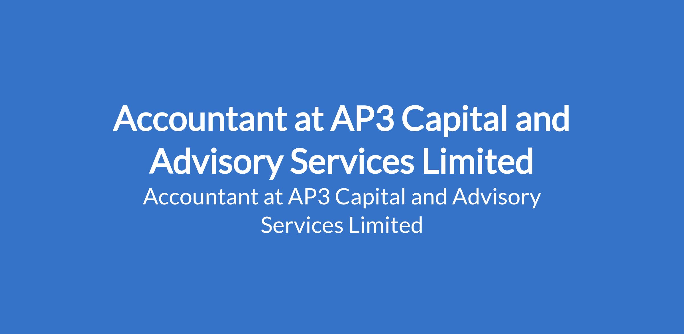 AP3 Capital and Advisory Services Limitedis recruiting to fill the position of: Accountant. The position is located in Lagos State. Salary: N150,000 - N200,000 per month. Interested candidates should possess a minimum of a BSc. Degree in Accounting and/or Finance, qualified Accountant (ICAN/ACCA/ACA) with demonstrable experience of 3+ years in the professional services industry; experience in sales, bid and proposal development is an added advantage.