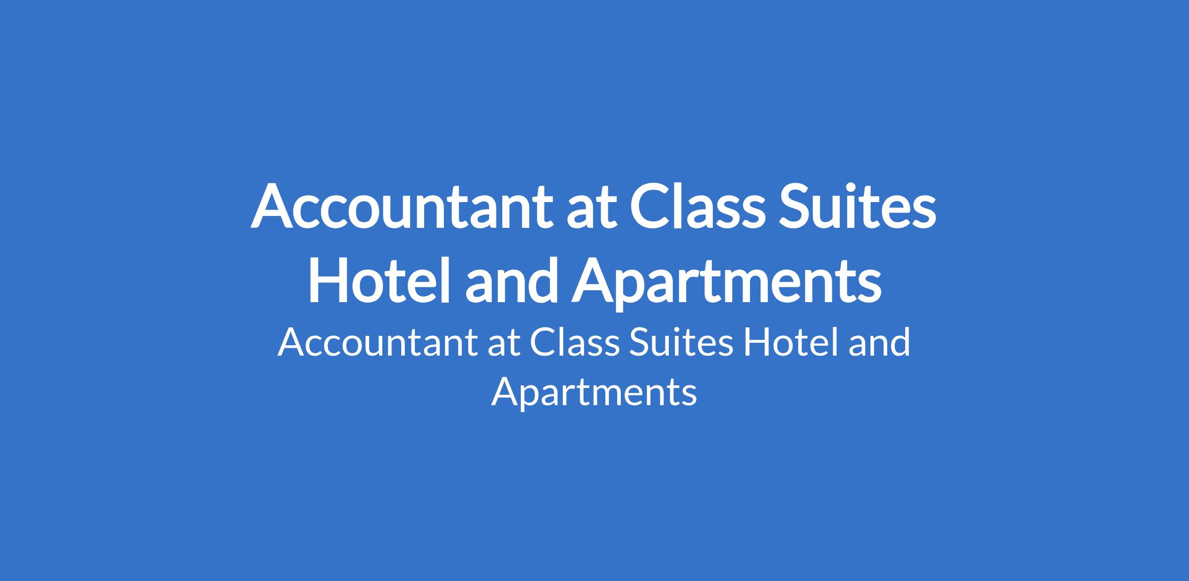 Accountant at Class Suites Hotel and Apartments