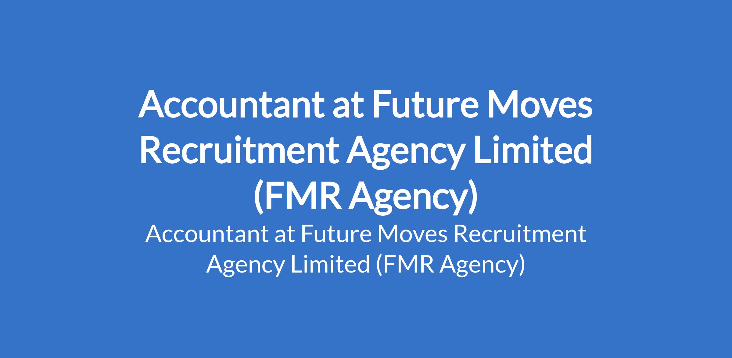 Future Moves Recruitment Agency Limited (FMR Agency) is recruiting to fill the position of: Accountant. The position is located in Lagos State. Salary: N250,000 per month (Net). Interested candidates should possess a Bachelors Degree in Accounting, Finance, or a related field with a minimum of 3 years experience in an accounting role (logistics or related industry preferred).