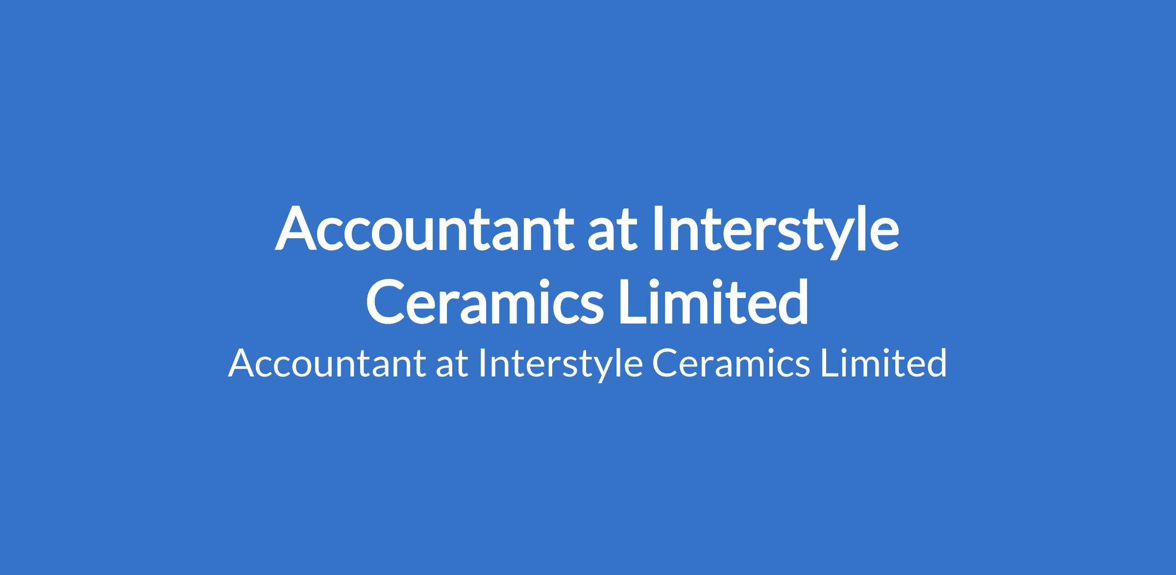 Interstyle Ceramics Limited is recruiting to fill the position of: Accountant. The position is located in Victoria Island, Lagos State. Salary: N200,000 - N300,000 / Month. Interested candidates should possess a Bachelor's Degree in Accounting with at least 2 years post NYSC work experience as an Accountant.