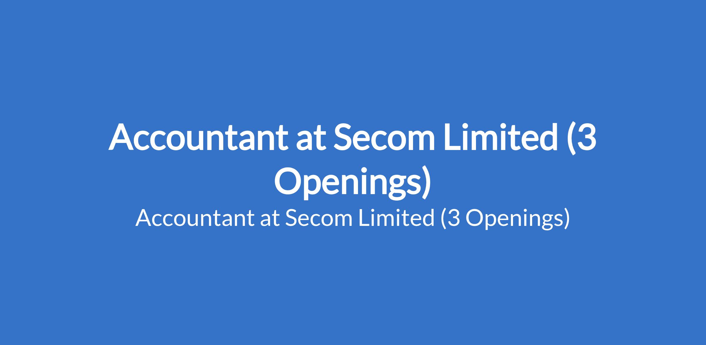 Secom Limited is recruiting to fill the position of: Accountant. The position is located in Akonwonjo, Alakuko, and Iyana Ipaja - Lagos State. Salary: N120,000 monthly. Interested candidates should possess a Bachelors Degree in Accounting, Finance, or related field with 23 years of relevant accounting experience (adjust based on level).