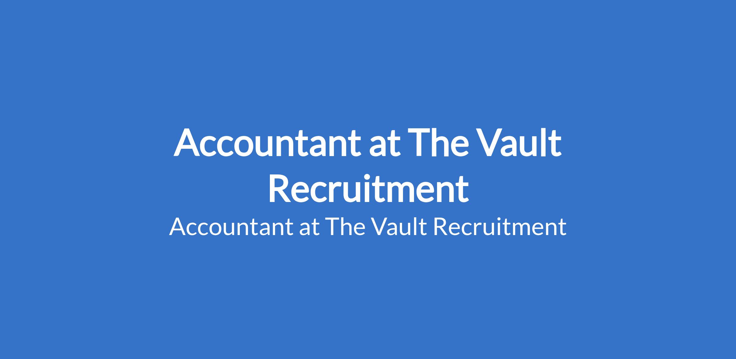 The Vault Recruitment is recruiting to fill the position of: Accountant. The position is located in Lagos, State. Salary: N300,000 - N400,000 per month. Interested candidates should possess a Bachelor's Degree in Accounting, Finance, or any related field with 3-5 years post NYSC experience.