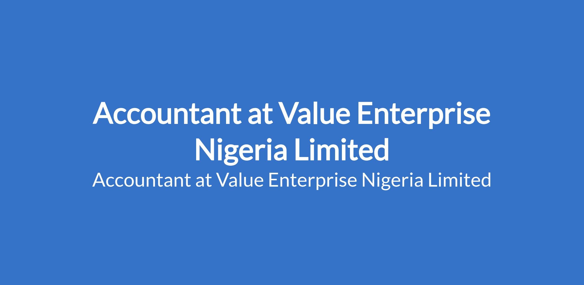 Value Enterprise Nigeria Limited is recruiting to fill the position of: Accountant. The position is located in Abule-Egba, Lagos State. Salary: N130,000 - N180,000 per month. Interested candidates should possess a minimum of HND / BSc. in Accounting or Finance with 3 5 years experience (retail, supermarket, or FMCG preferred).