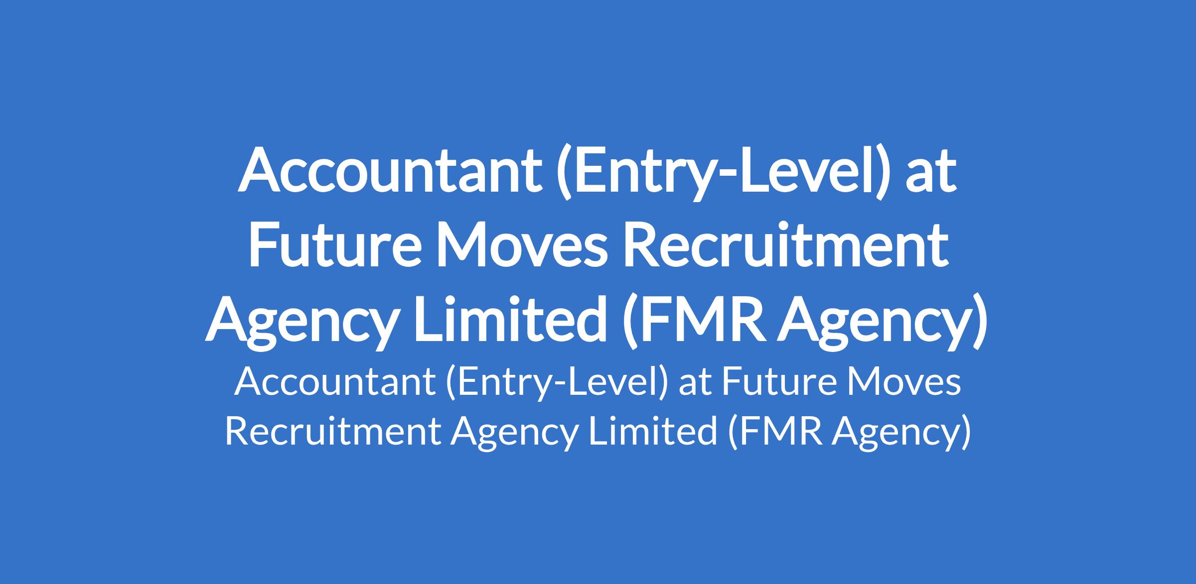 Future Moves Recruitment Agency Limited (FMR Agency) is recruiting to fill the position of: Accountant (Entry-Level). The position is located in Surulere, Lagos State. Salary: N150,000 N160,000 Gross Monthly. Interested candidates should possess a Bachelors Degree / HND in Accounting or related fields and strong proficiency in Microsoft Excel with 12 years practical accounting experience (retail or food business experience is an advantage).