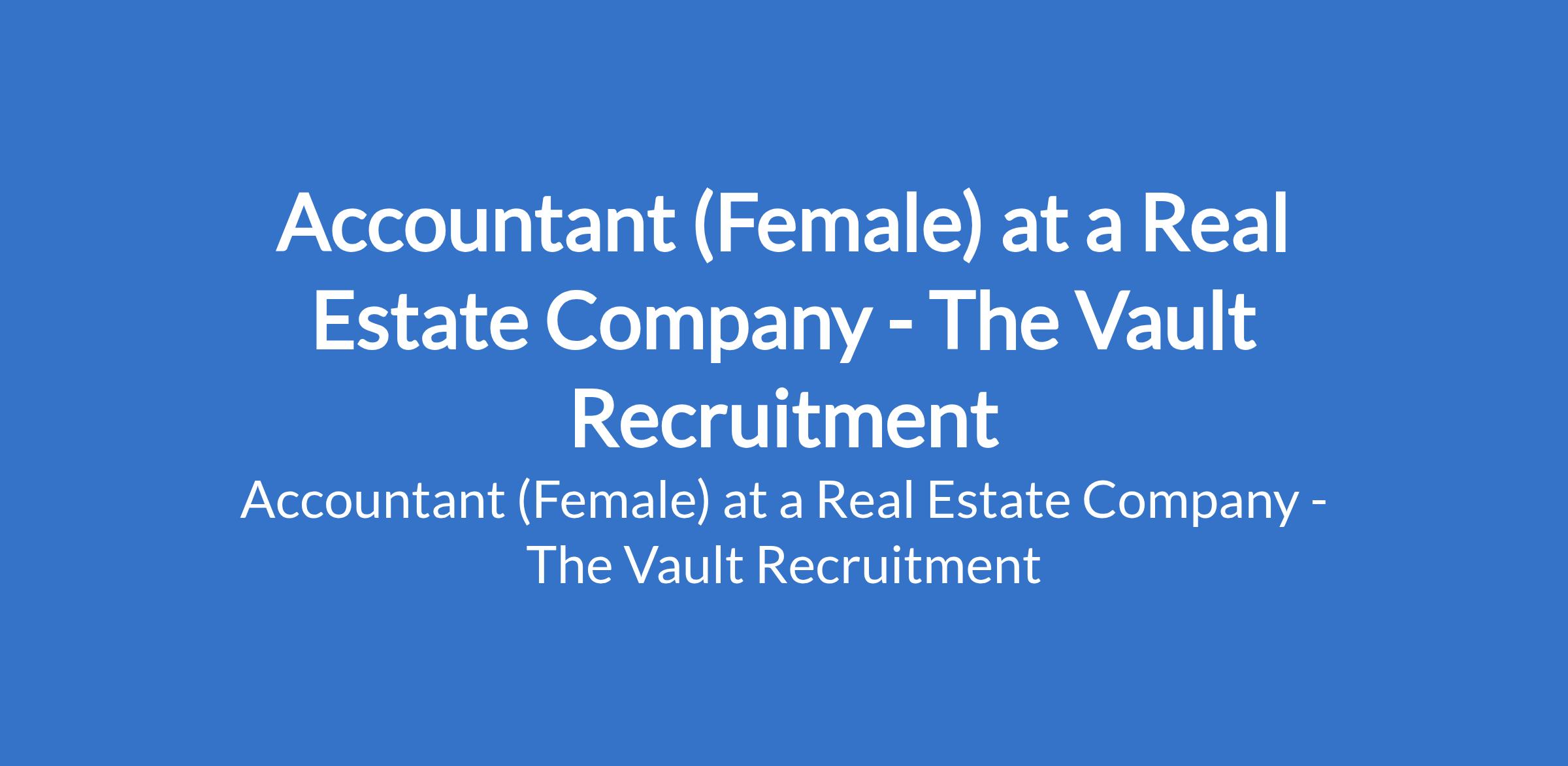 The Vault Recruitment - Our client, a real estate company is recruiting to fill the position of: Accountant (Female). The position is located in Ikota Villa, Lekki - Lagos State. Salary: N200,000 monthly. Interested candidates should possess a BSc / HND in Accounting, Finance, or a related field with 1 3 years accounting experience.