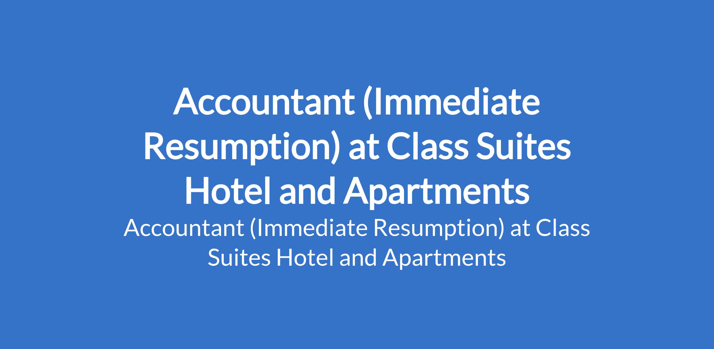 Accountant (Immediate Resumption) at Class Suites Hotel and Apartments