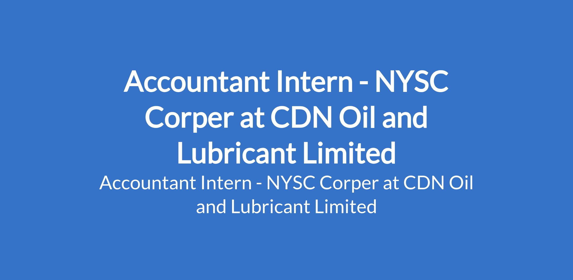 CDN Oil and Lubricant Limited is recruiting to fill the position of: Accountant Intern - NYSC Corper. The position is located in Abuja. Salary: N50,000 - N100,000 monthly. Interested candidates should possess relevant qualification and must be posted to Abuja and should have at least a minimum of 9 months left to serve as a Corper.