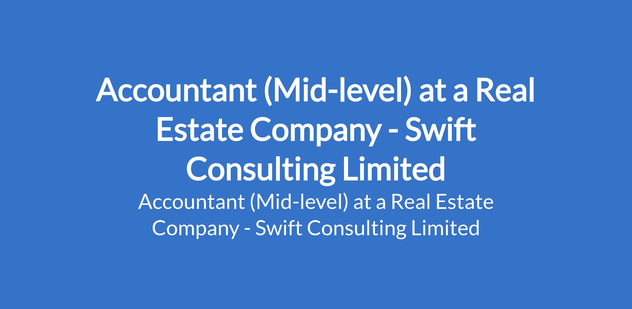 Swift Consulting Limited - Our client, a Real Estate company is recruiting to fill the position of: Accountant (Mid-level). The position is located in Lekki, Lagos State. Interested candidates should possess a Bachelors Degree in Accounting, Finance, or related fields with 35 years accounting experience (experience in real estate is an advantage).