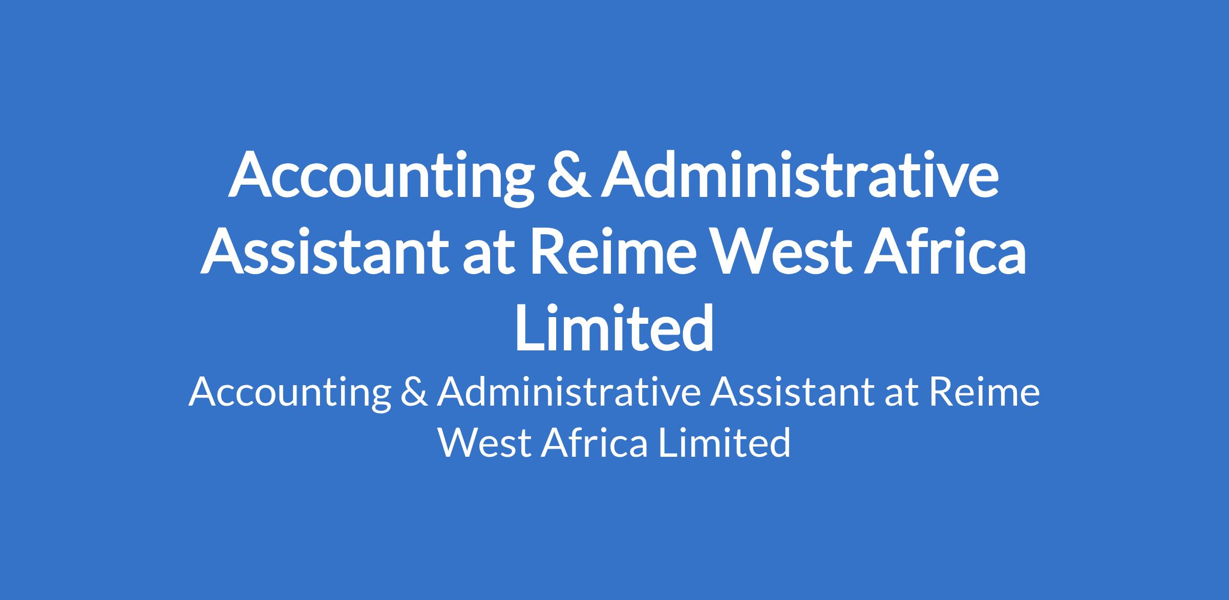 Reime West Africa Limited is recruiting to fill the position of: Accounting & Administrative Assistant. The position is located in Ikoyi, Lagos State. Salary: N200,000 - N230,000 monthly. Interested candidates should possess a Bachelors Degree in Accounting, Finance, Business Administration, or related field with 13 years of experience in accounting support, administrative functions, or accounts payable.