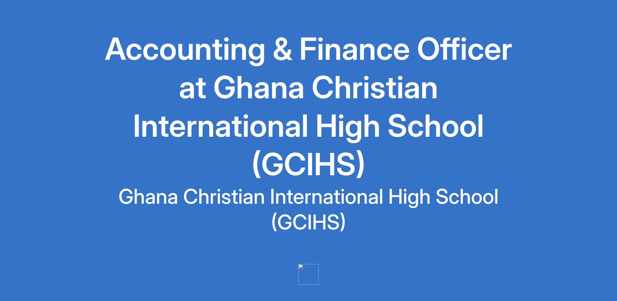 Ghana Christian International High School is seeking to recruit Accounting & Finance Officer.