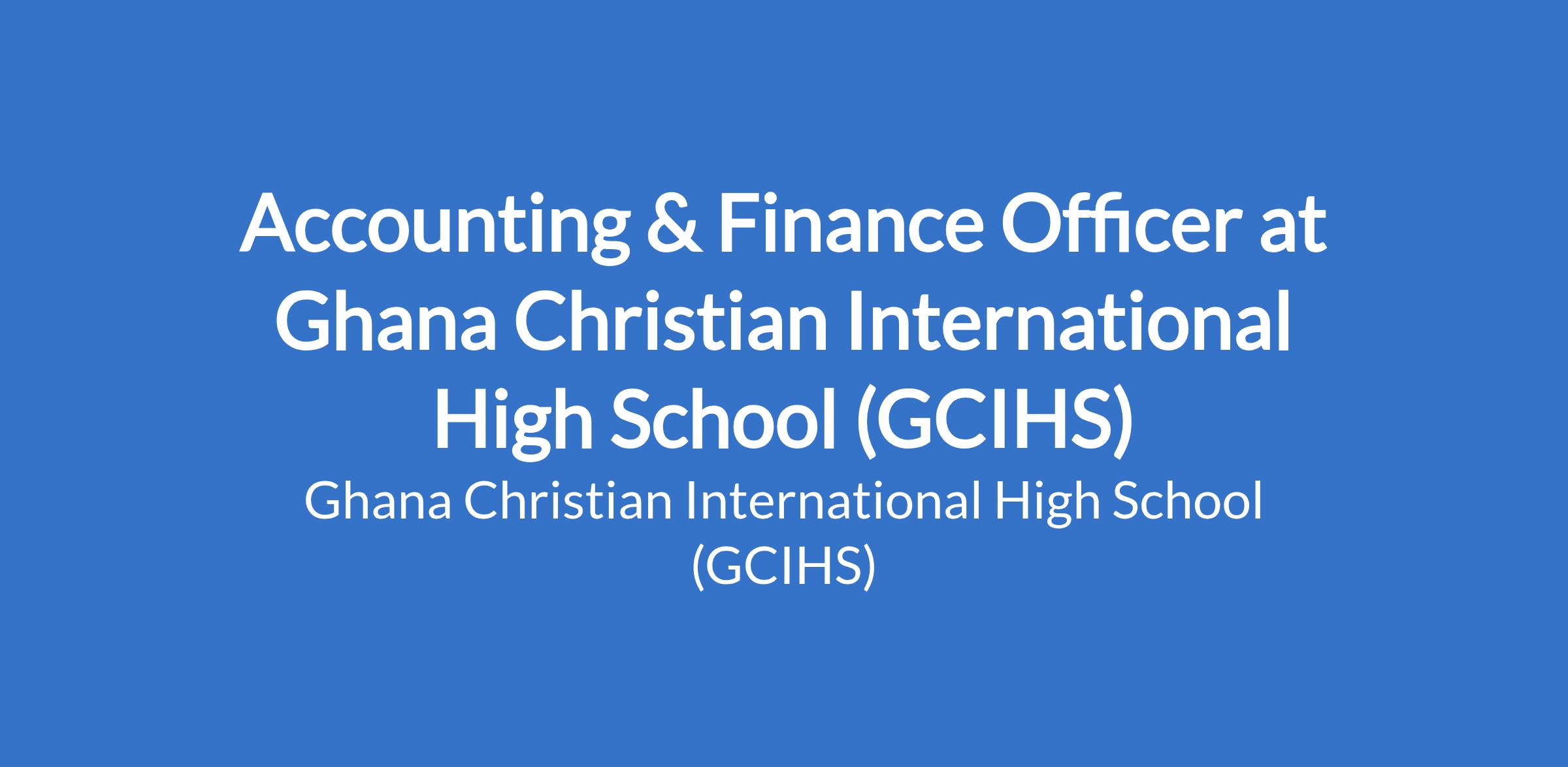 Ghana Christian International High School is seeking to recruit Accounting & Finance Officer.