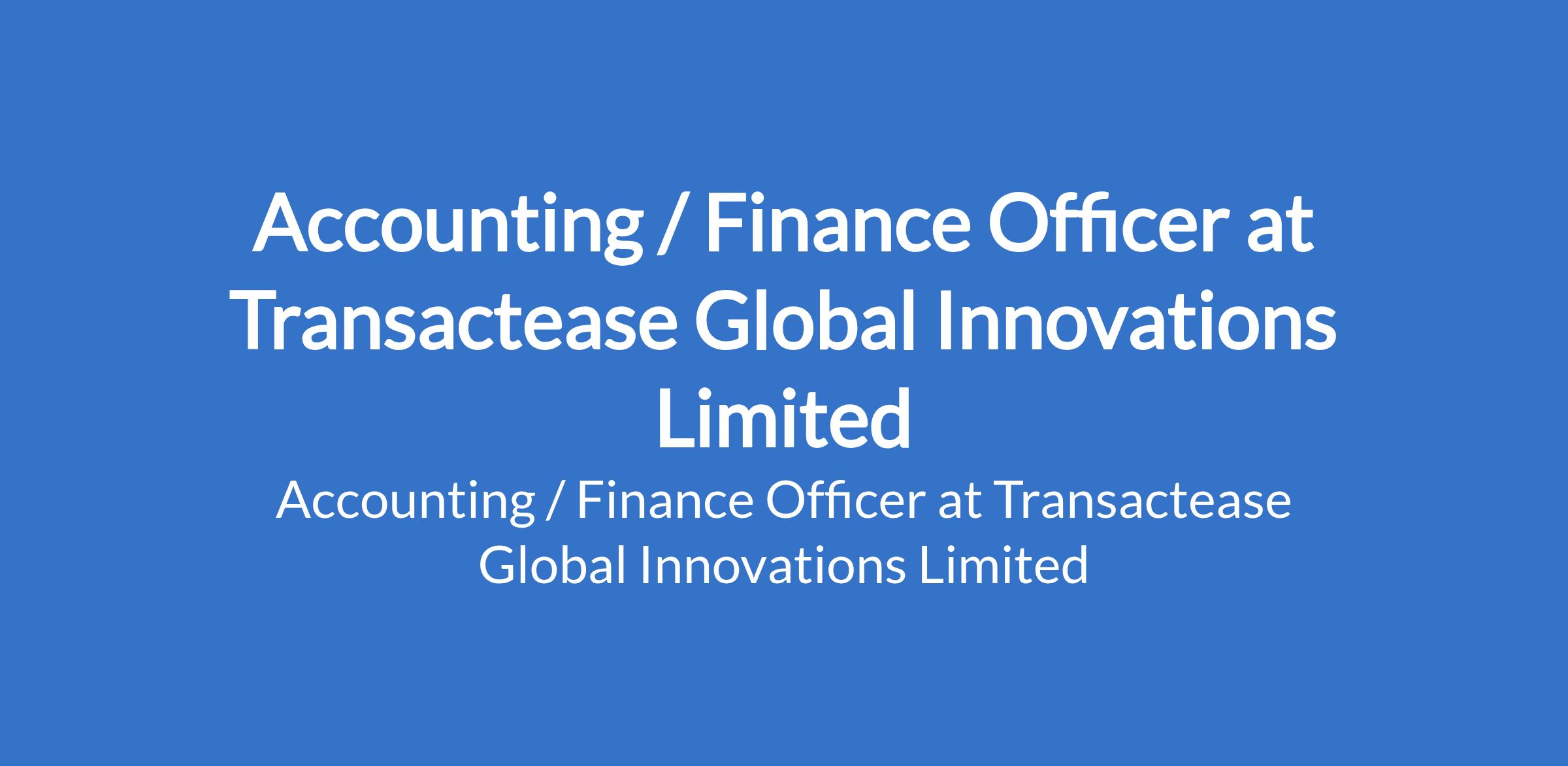Transactease Global Innovations Limited is recruiting to fill the position of: Accounting/Finance Officer. The position is located in Lagos State. Salary: N250,000 - N400,000 monthly. Interested candidates should possess a B.Sc. in Accounting, Finance, or related field with a minimum of 3 years experience (fintech, banking, or financial services preferred).