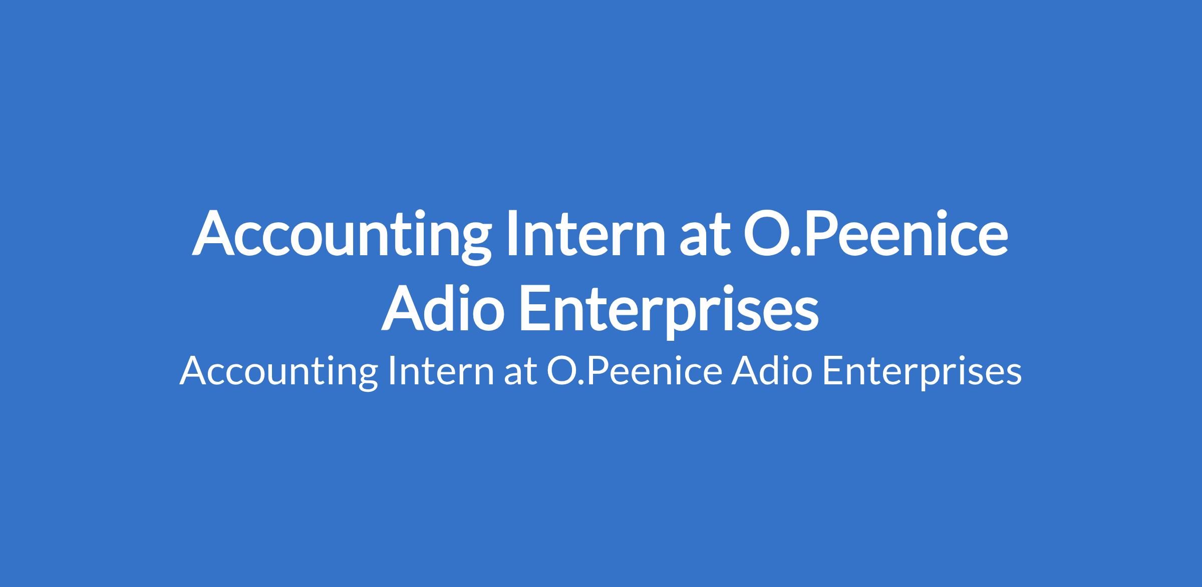 O.Peenice Adio Enterprises is recruiting to fill the position of: Accounting Intern. The position is located in Lagos State. Salary: N90,000 - N150,000 per month. Interested candidates should be a recent Graduate or currently in the last year of Accounting & Finance studies (B.Sc or M.Sc) with excellent command of the English language.
