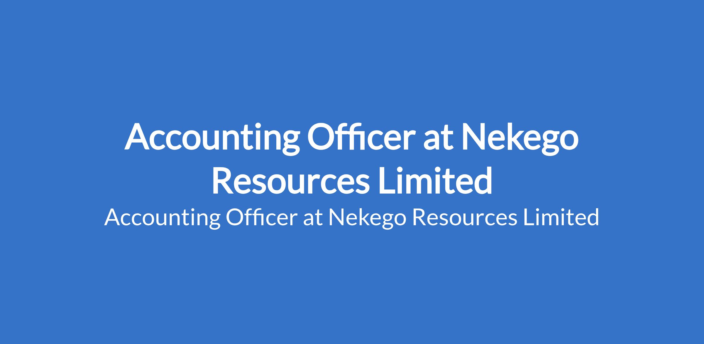 Nekego Resources Limited is recruiting to fill the position of: Accounting Officer. The position is located in Ogudu GRA, Lagos State. Salary: N200,000 - N250,000 / month. Interested candidates should possess an HND or BSc. Degree in Accounting or related field with 1 to 2 years relevant accounting experience.