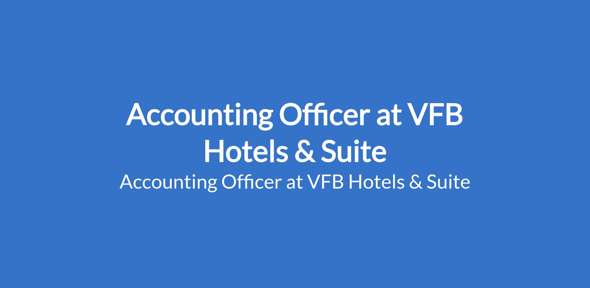 VFB Hotels & Suite is recruiting to fill the position of: Accounting Officer. The position is located in Sapele, Delta State. Interested candidates should possess an OND, HND, or B.Sc. in Accounting, Banking & Finance, or a related discipline with previous experience in a hotel or hospitality setting and must reside in Sapele or be willing to relocate.