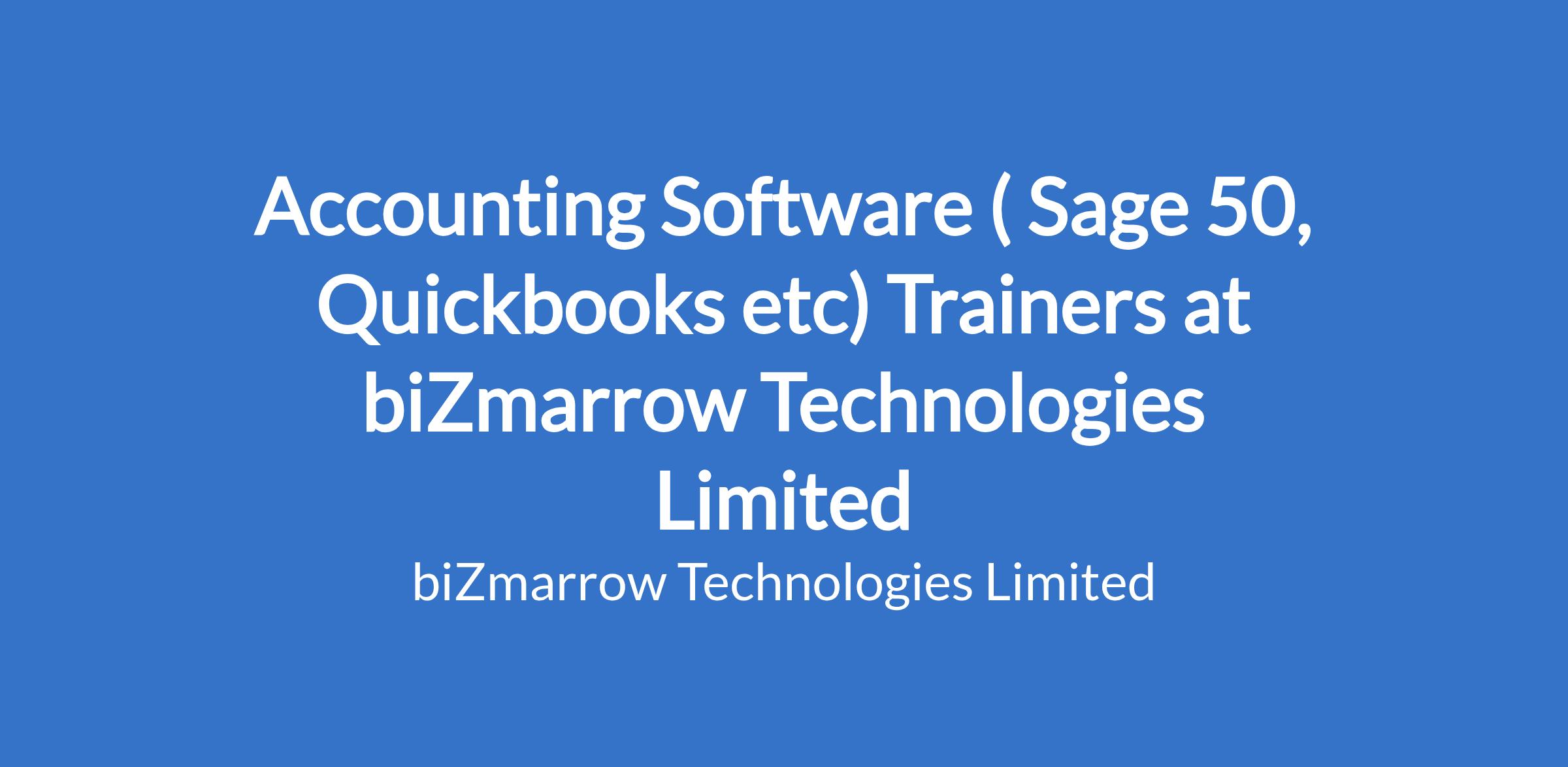 Accounting Software ( Sage 50, Quickbooks etc) Trainers at biZmarrow Technologies Limited