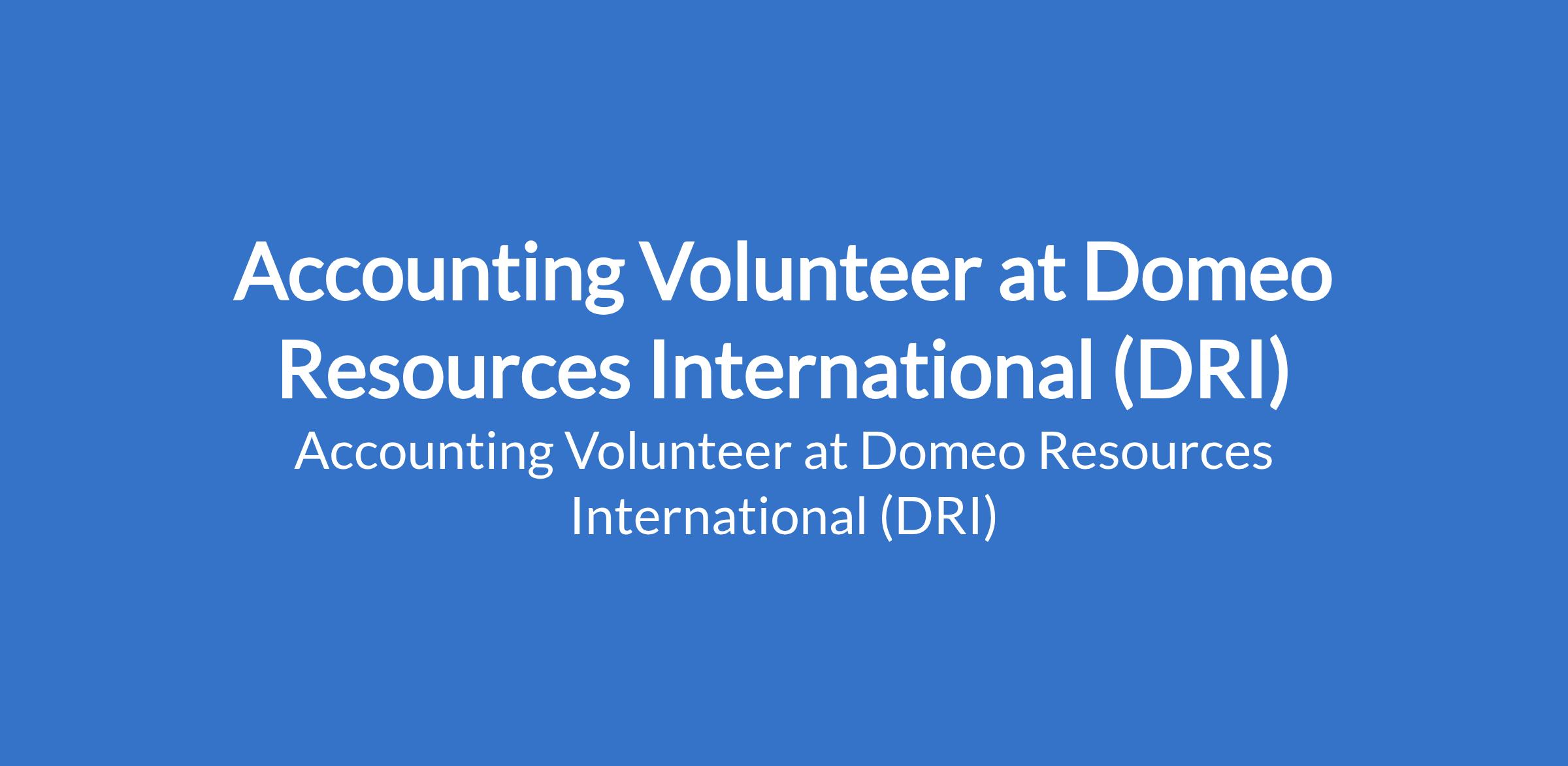 Domeo Resources International (DRI) is recruiting to fill the position of: Accounting Volunteer. The position is located in Abuja (FCT). Interested candidates should possess a Bachelors Degree or HND in Accounting, Finance, Business Administration, or a related field with 6 months 1 year of work experience or internship experience preferred.