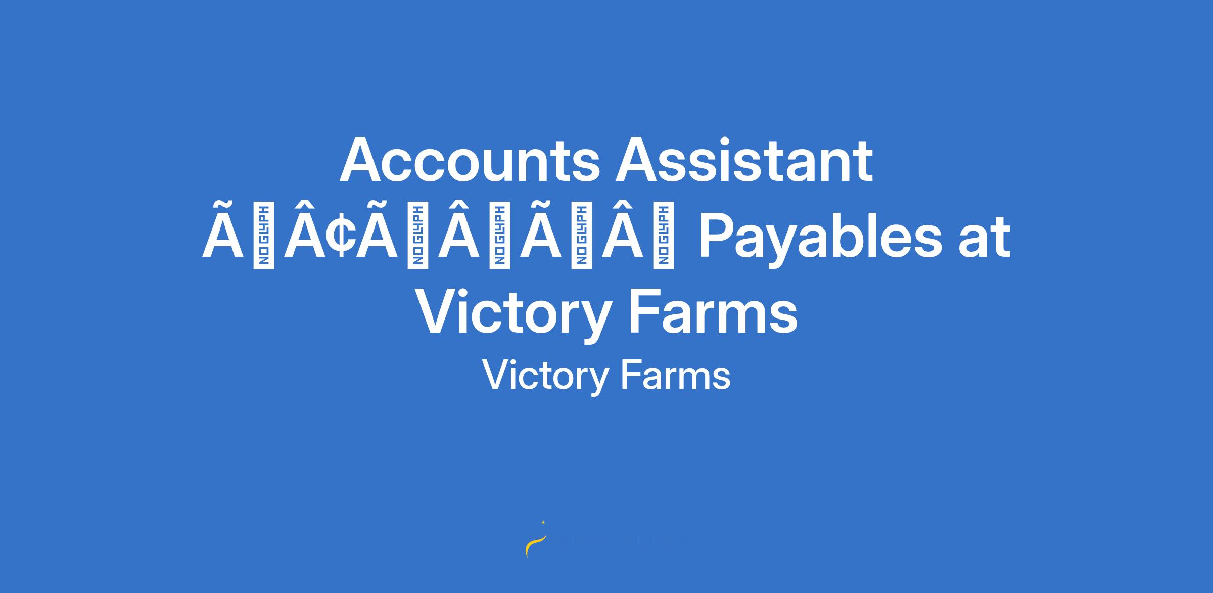 Accounts Assistant âÃÂàPayables at Victory Farms