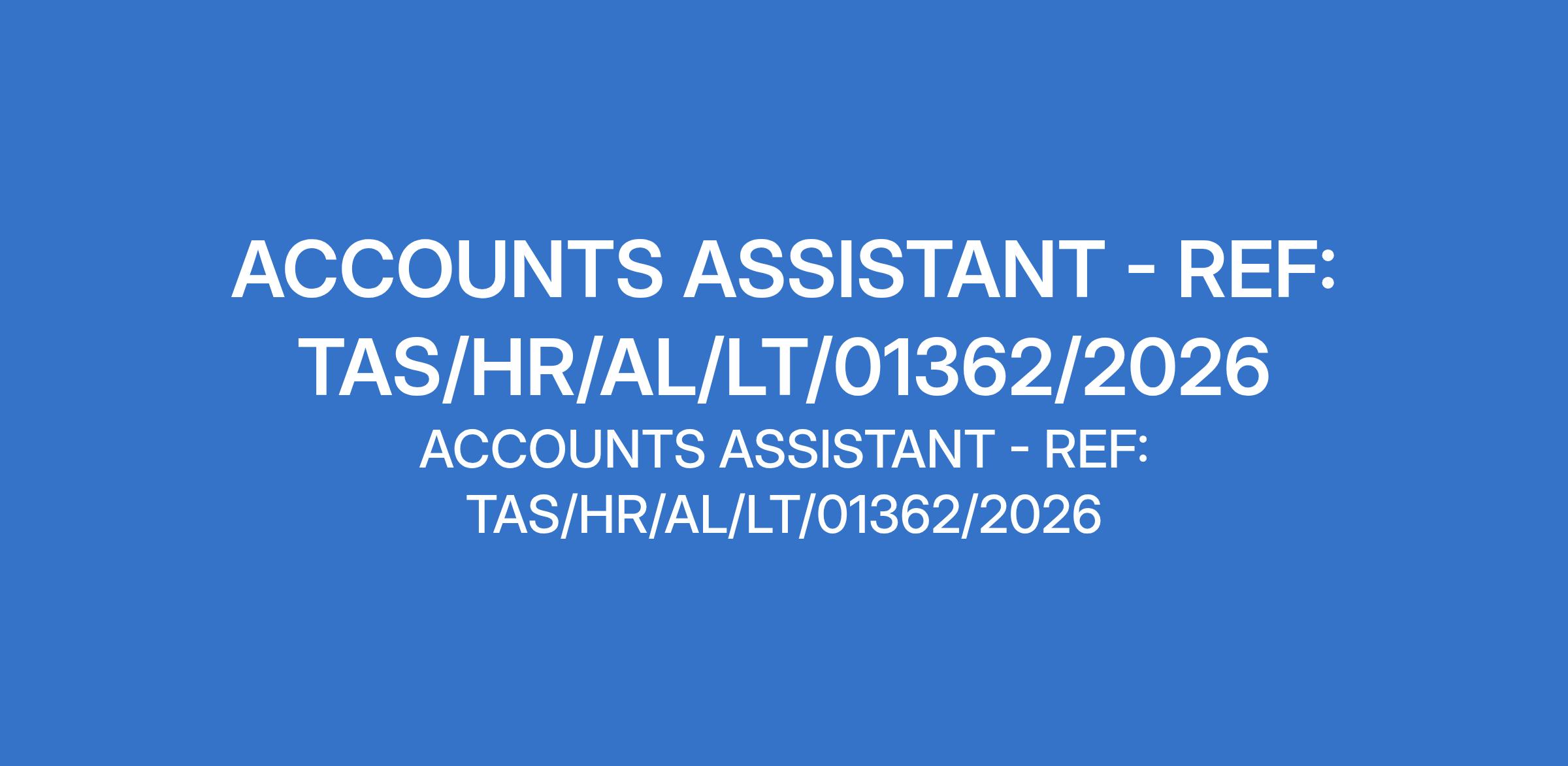 ACCOUNTS ASSISTANT - REF: TAS/HR/AL/LT/01362/2026