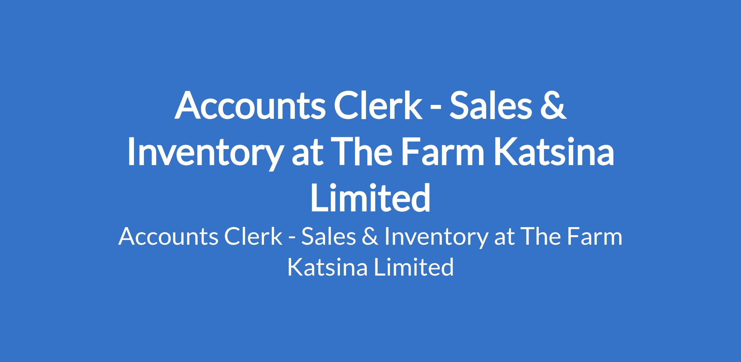 The Farm Katsina Limited is recruiting to fill the position of: Accounts Clerk - Sales & Inventory. The position is located in Katsina State. Interested candidates should possess a minimum of HND in Accounting (Degree holders may also apply) with 02 years experience (entry-level role).