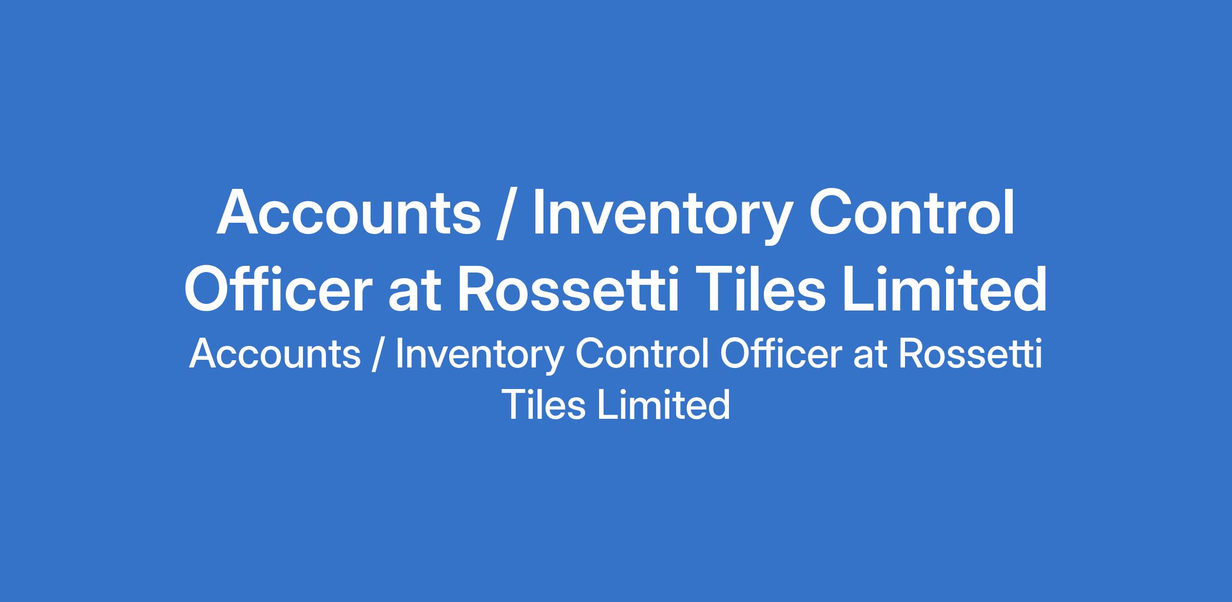 Rossetti Tiles Limited is recruiting to fill the position of: Accounts / Inventory Control Officer. The position is located in Surulere, Lagos State. Salary: N150,000 monthly. Interested candidates should possess a Degree in Accounting, Finance, or a related field and proficiency in Accounting software, such as Excel or ERP systems with 3 years work experience.