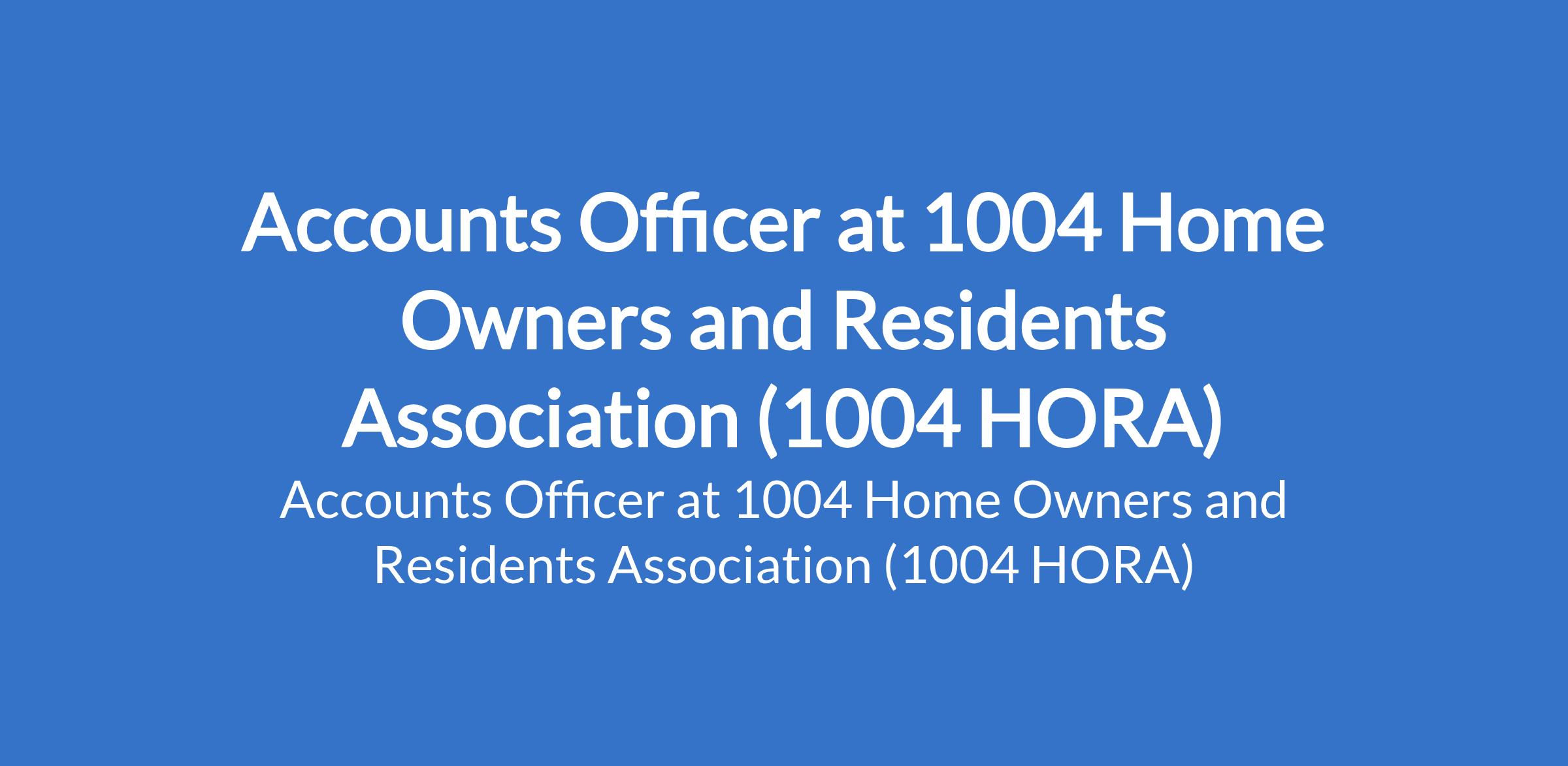 The 1004 Home Owners and Residents Association (1004 HORA) - 1004 Estate Management Office is recruiting to fill the position of: Accounts Officer. The position is located in Victoria Island, Lagos State. Interested candidates should possess a Bachelor's Degree in Accounting, Finance, or related field with 3 - 5 years accounting experience (experience in real estate is an advantage).