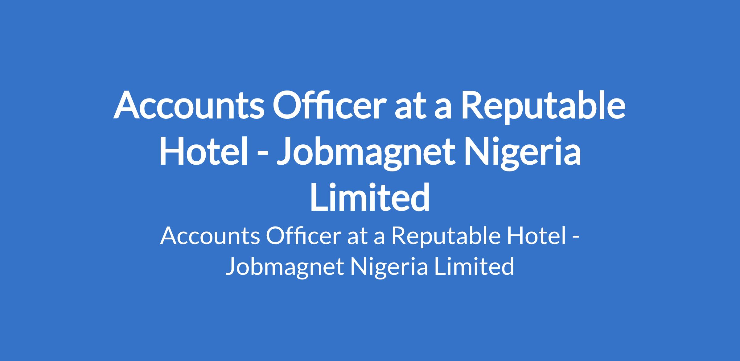 Jobmagnet Nigeria Limited - Our client, a reputable hotel is recruiting to fill the position of: Accounts Officer. The position is located in Ota, Ogun State. Salary N200,000 - N250,000 monthly. Interested candidates should possess a B.Sc / HND in Accounting, Finance, or a related discipline with 3 5 years proven experience in accounting, preferably in the hospitality industry.