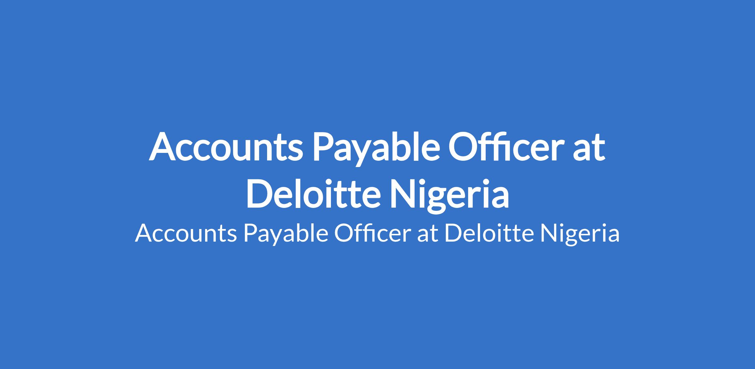 Deloitte Nigeria is recruiting to fill the position of: Accounts Payable Officer. The position is located in Lagos State. Interested candidates should possess a Bachelors Degree (B.A., B.Eng./B. Tech., etc.) or Higher National Diploma (HND) in any relevant discipline with a minimum of Second Class Lower / Lower Credit division, be Fully or Part Qualified Accountant (ICAN, ACCA) with a minimum of 2 years relevant experience.