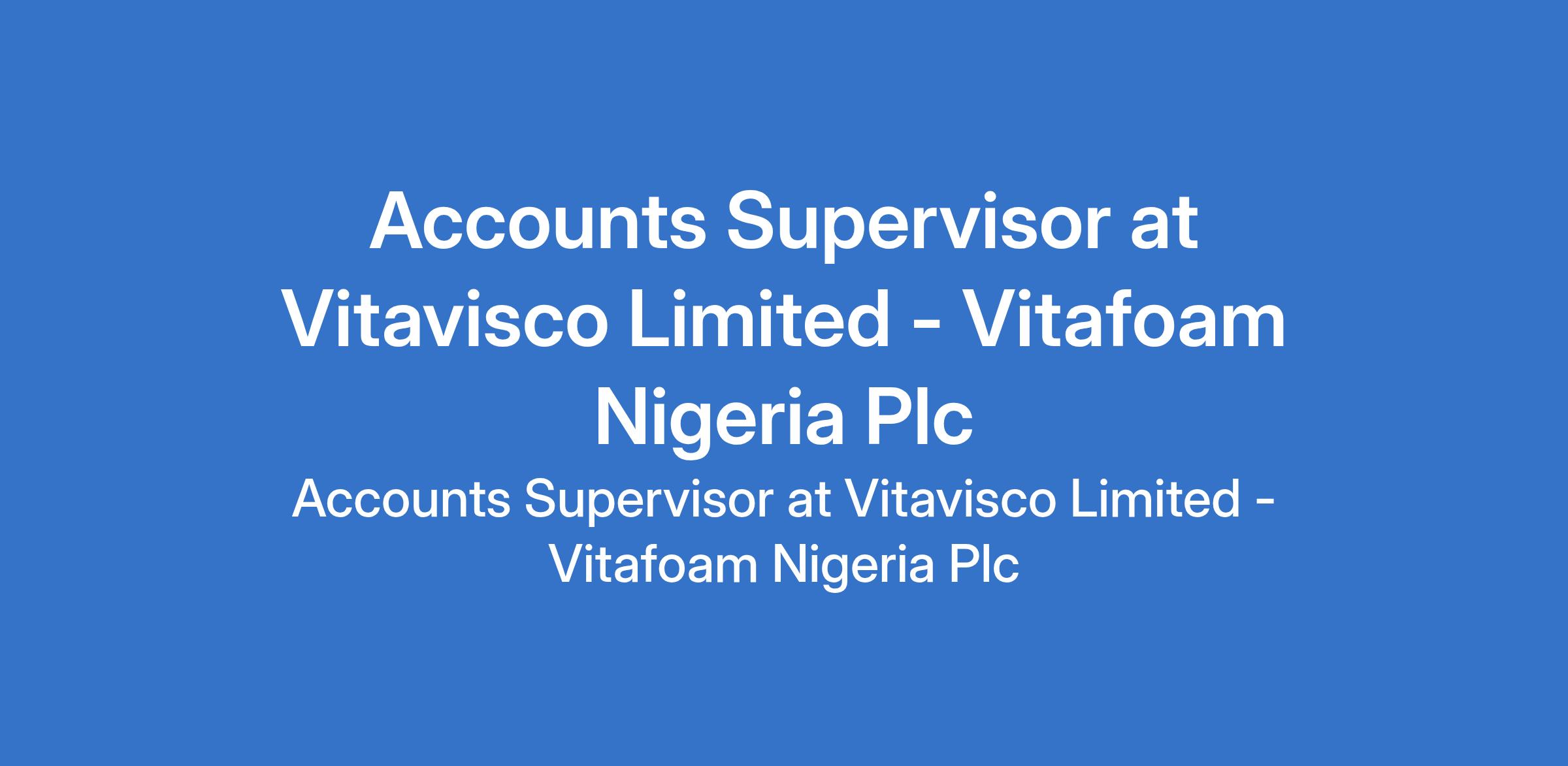 Vitavisco Limited, a subsidiary of Vitafoam Nigeria Plc is recruiting to fill the position of: Accounts Supervisor. The position is located in Mushin, Lagos State. The ideal candidate will ensure accuracy, compliance, and timely reporting of financial records. Interested candidates should possess an HND / B.Sc Degree in Accounting with 3 5 years relevant accounting experience, preferably in a structured organization.