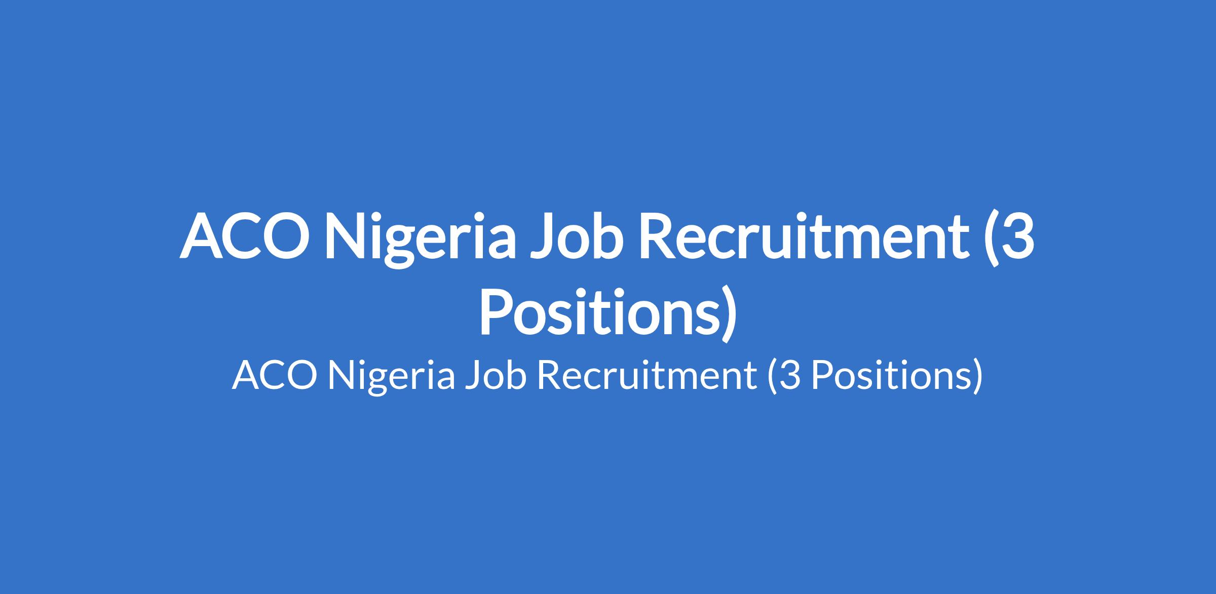 ACO Nigeria Job Recruitment (3 Positions)