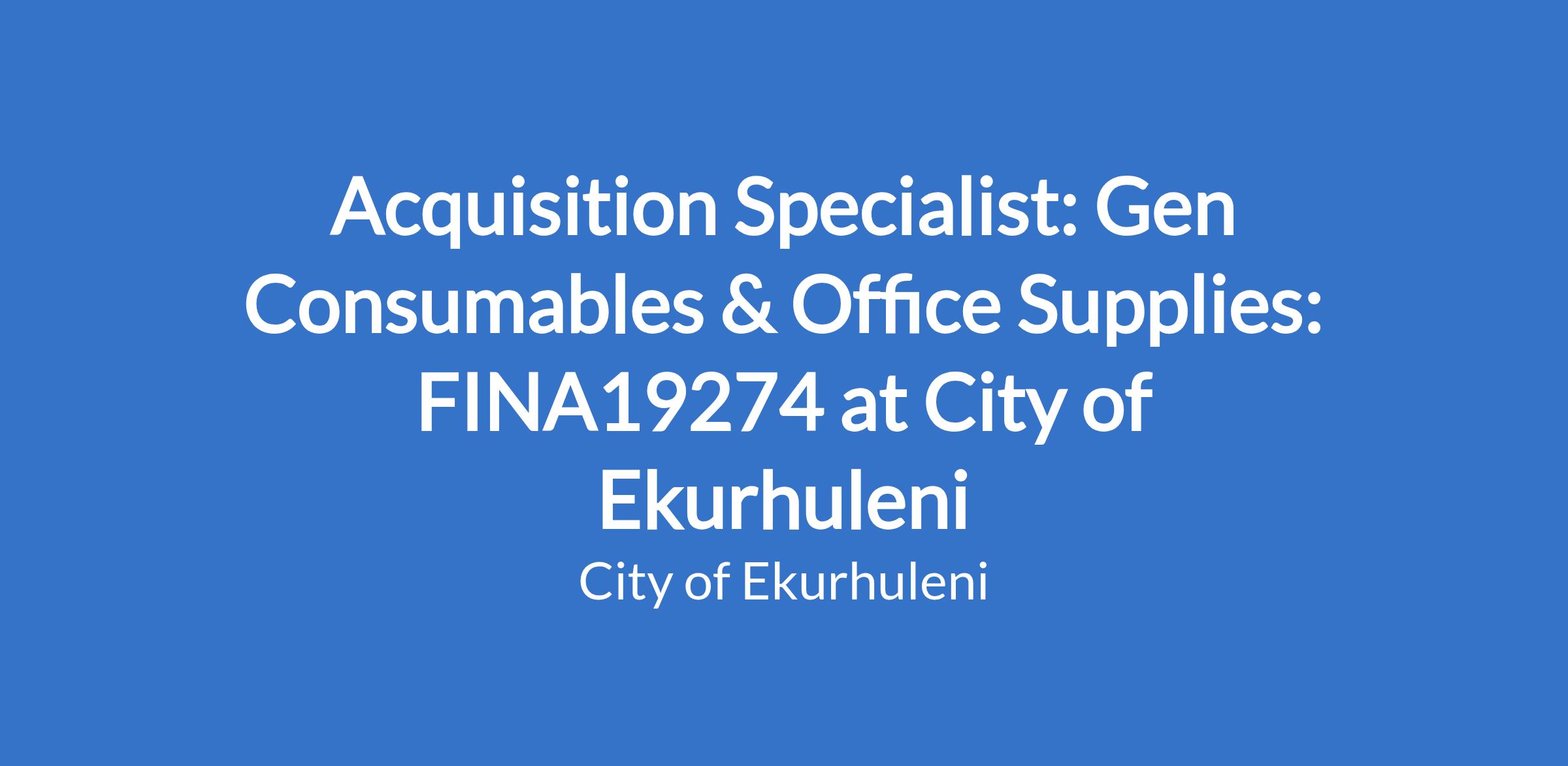 Acquisition Specialist: Gen Consumables & Office Supplies: FINA19274 at City of Ekurhuleni