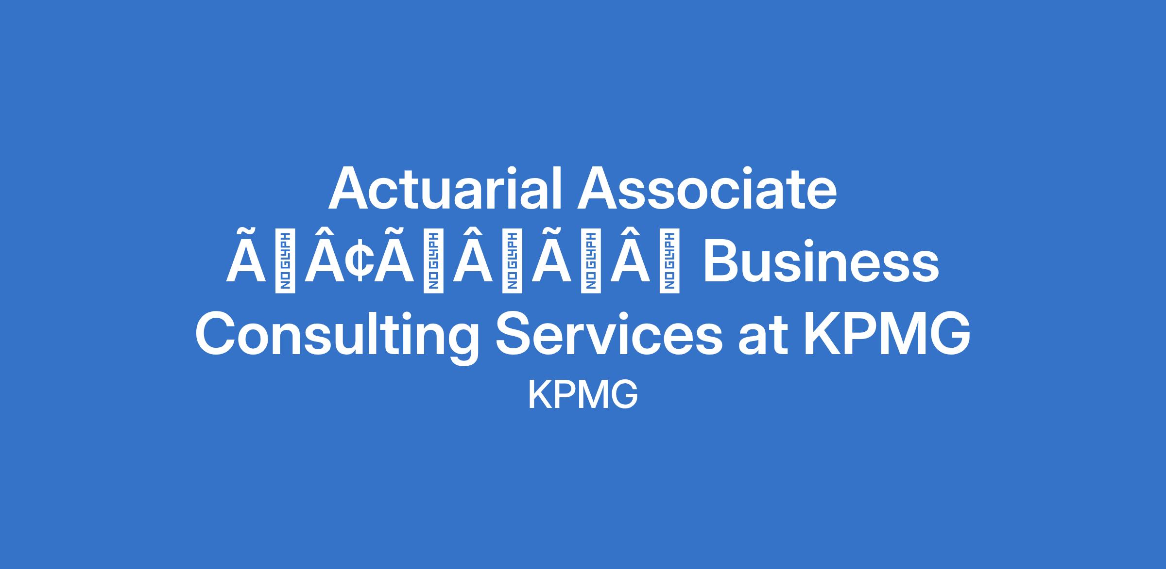 Actuarial Associate âÃÂàBusiness Consulting Services at KPMG