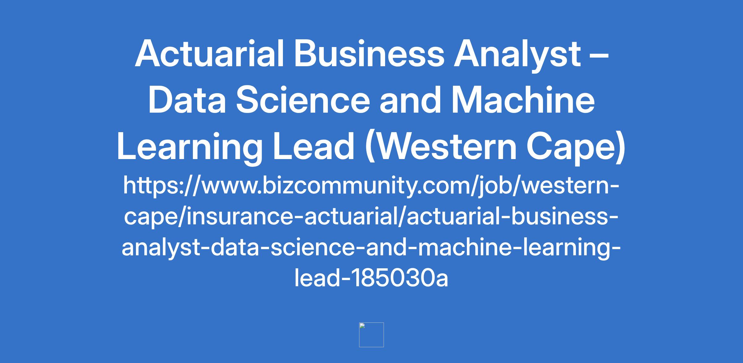 https://www.bizcommunity.com/job/western-cape/insurance-actuarial/actuarial-business-analyst-data-science-and-machine-learning-lead-185030a