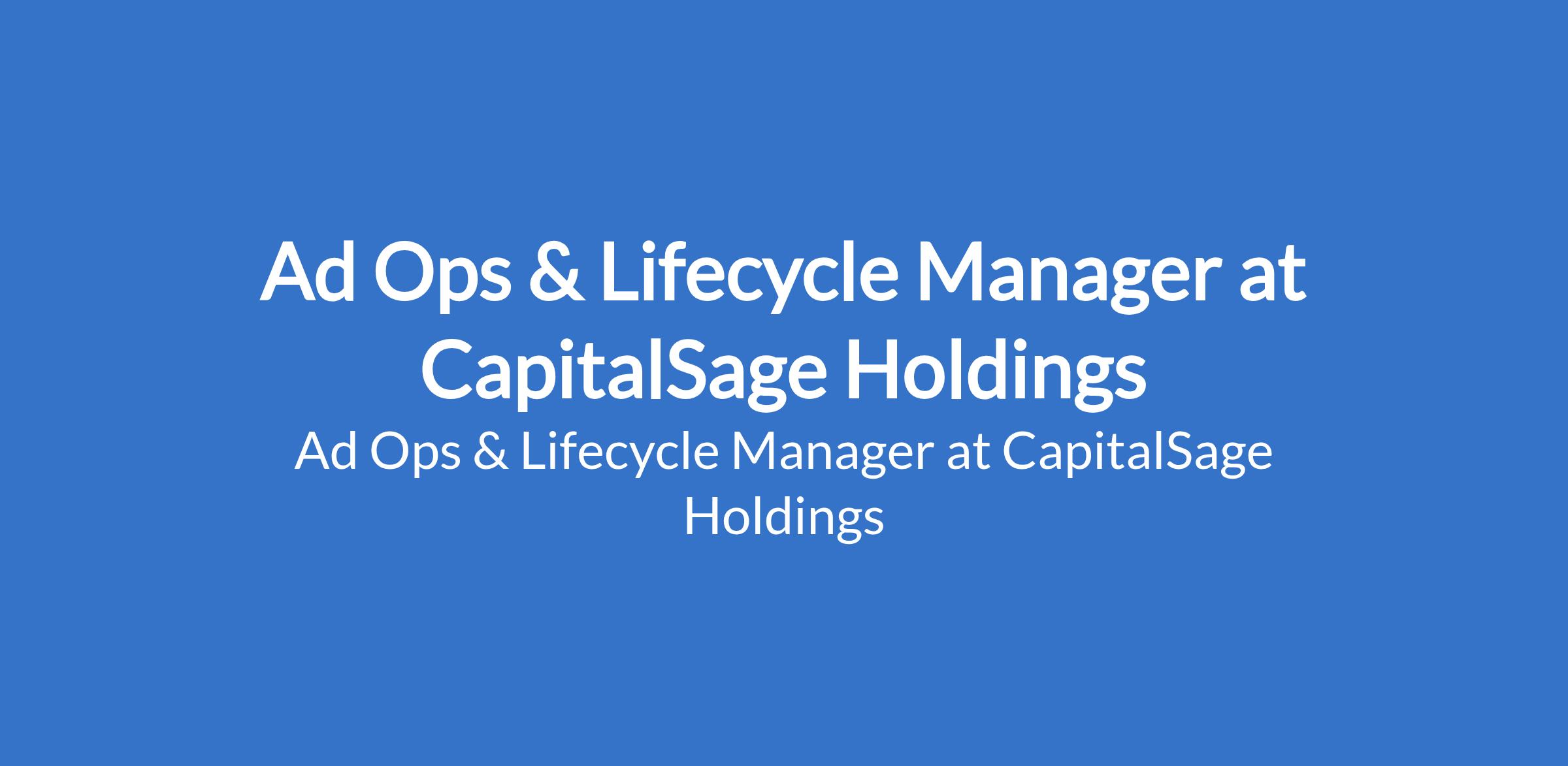 Ad Ops & Lifecycle Manager at CapitalSage Holdings