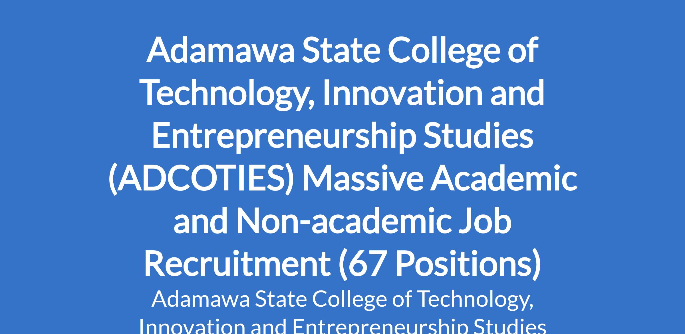 Adamawa State College of Technology, Innovation and Entrepreneurship Studies (ADCOTIES) Massive Academic and Non-academic Job Recruitment (67 Positions)