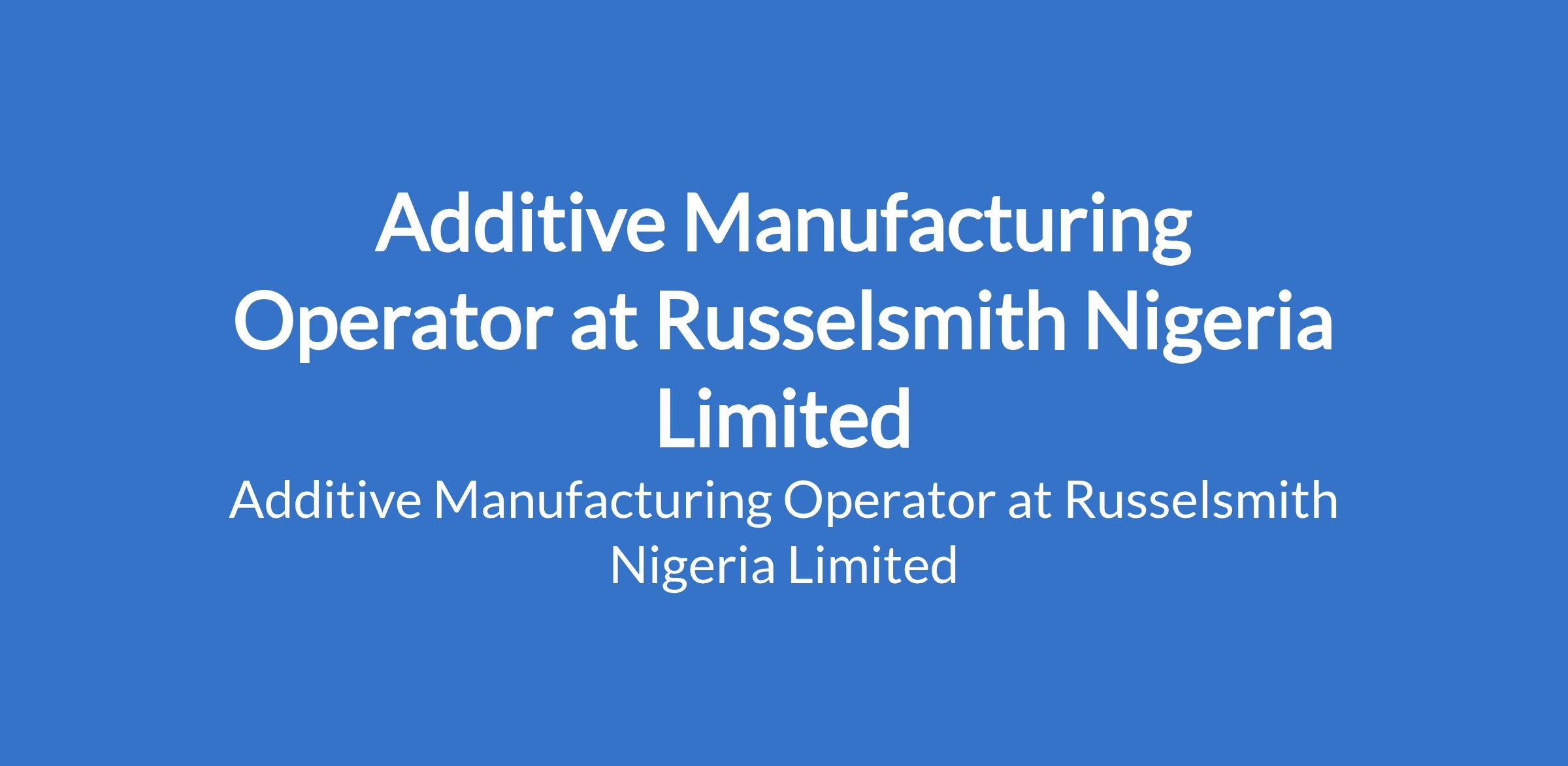 Additive Manufacturing Operator at Russelsmith Nigeria Limited