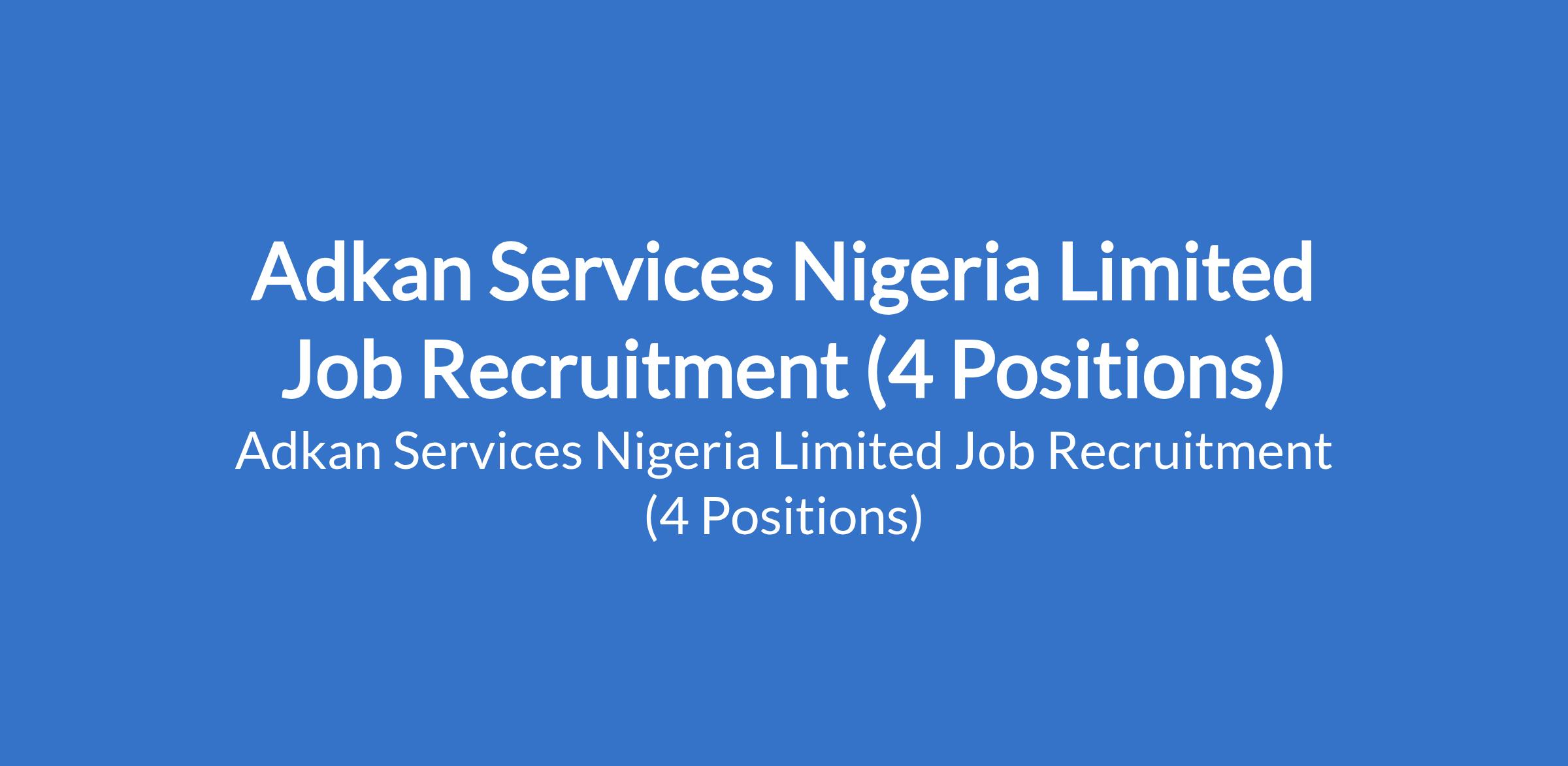 Adkan Services Nigeria Limited Job Recruitment (4 Positions)