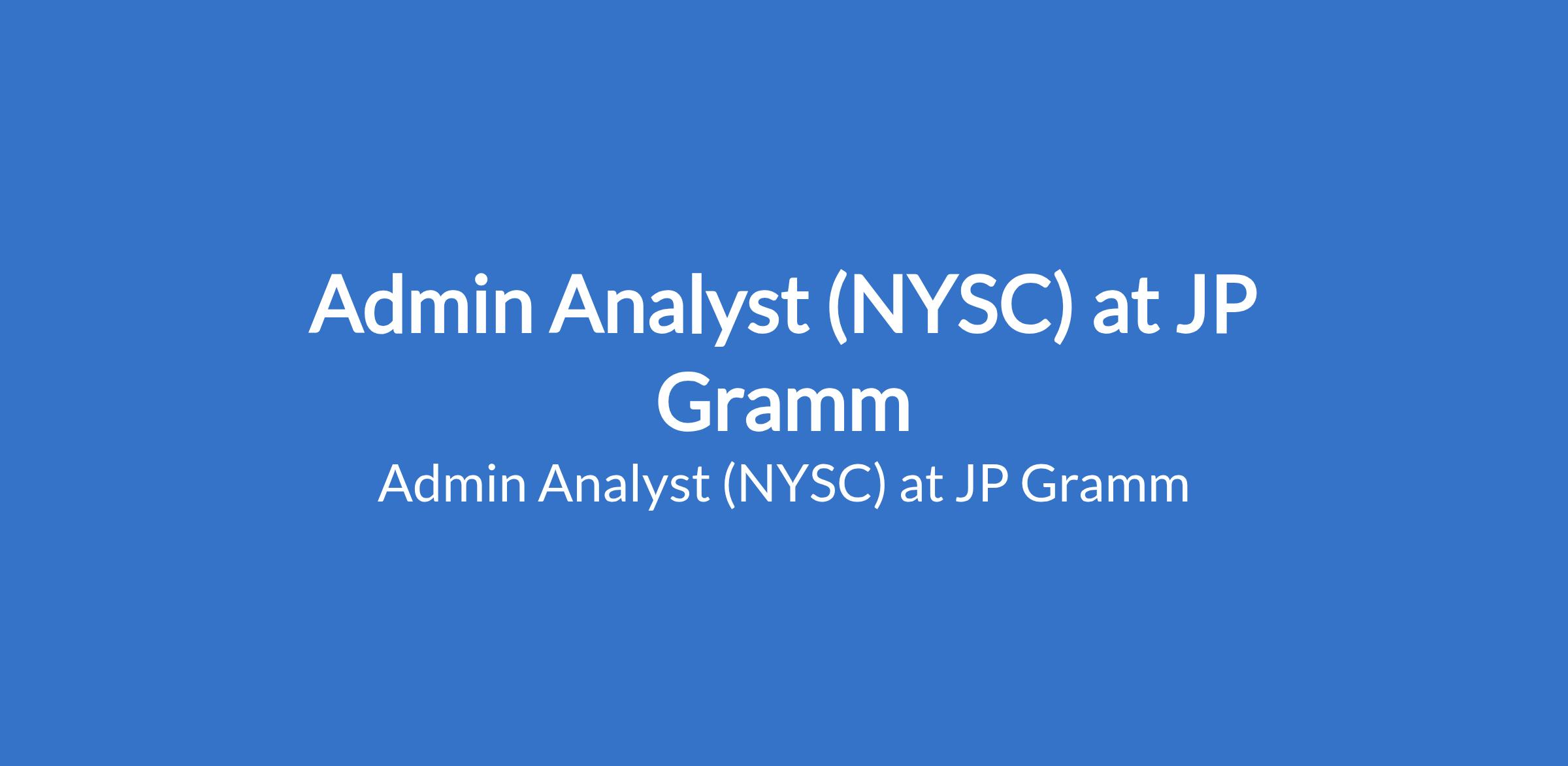 Admin Analyst (NYSC) at JP Gramm