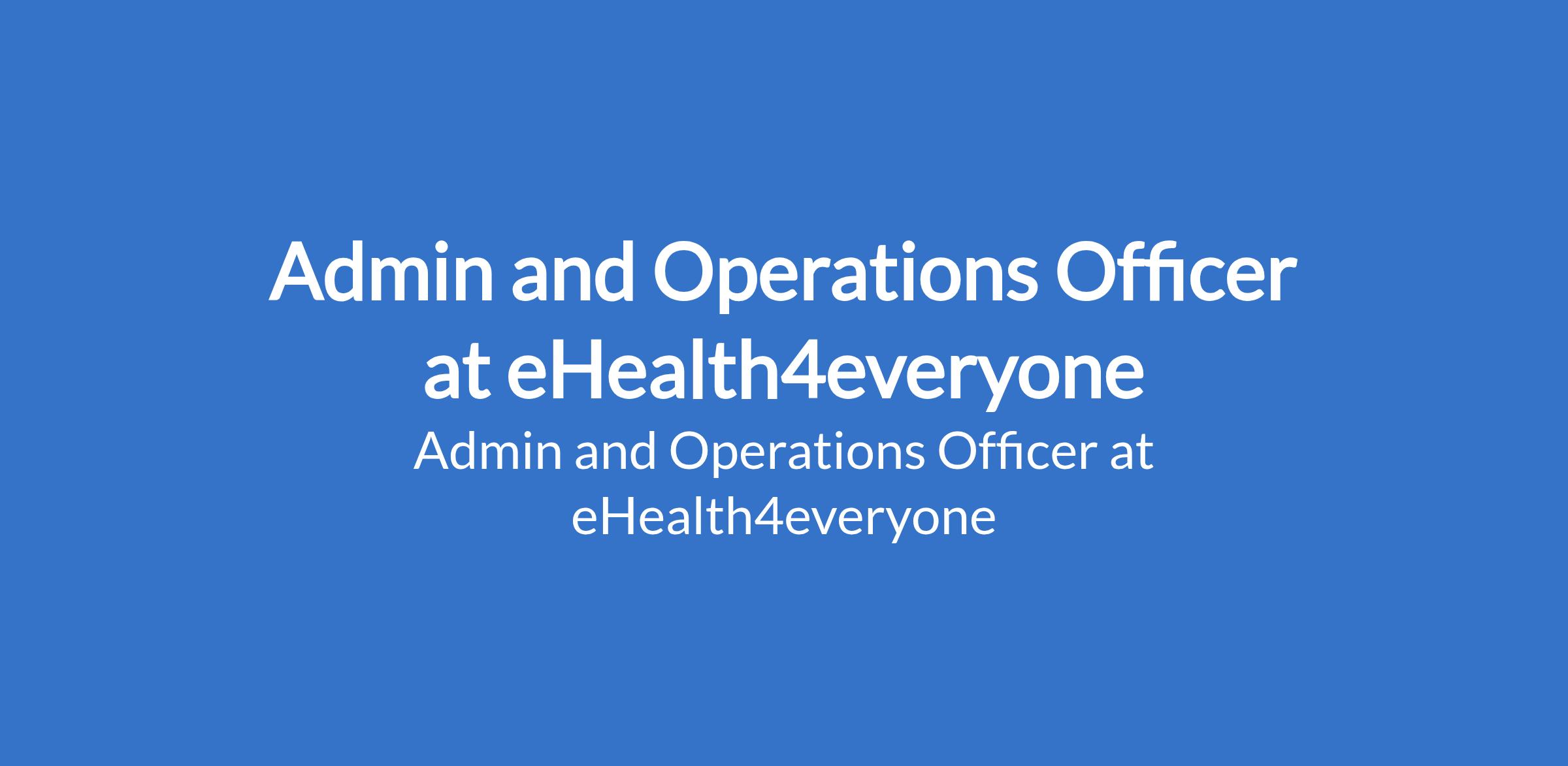 eHealth4everyone is recruiting to fill the position of: Admin and Operations Officer. The position is located in Abuja (FCT). Interested candidates should possess a Bachelors Degree in Business Administration, Management, or a related field with 3 years of experience in administration or operations.