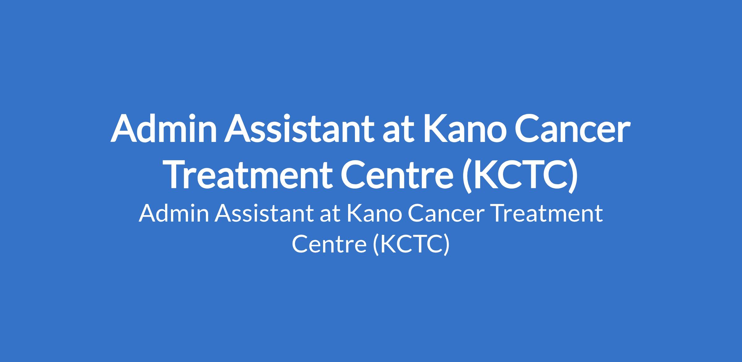 Kano Cancer Treatment Centre (KCTC) is recruiting to fill the position of: Admin Assistant. Interested candidates should possess a National Diploma (ND) or Higher National Diploma (HND) in Business Administration, Secretarial Studies, Office Technology, or related field with 12 years experience in administrative or clerical support roles.