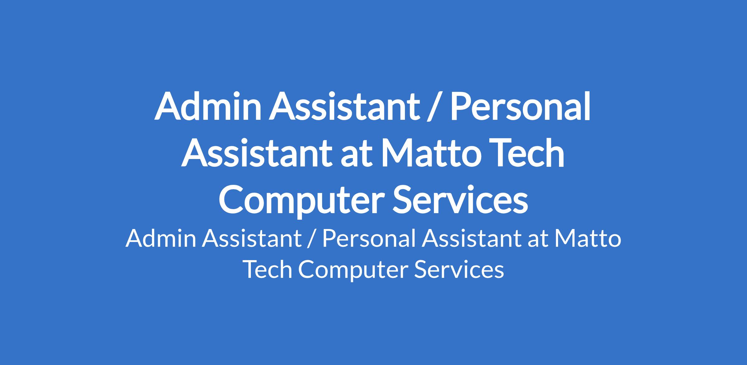 Matto Tech Computer Services is recruiting to fill the position of: Admin Assistant / Personal Assistant. The position is located in Lagos State. Salary: N150,000 - N200,000 monthly. Interested candidates should possess an OND / HND / BSc Degree in Business Administration, Office Technology, or related fields with 1 - 3 years experience as an admin assistant, PA, or secretary.