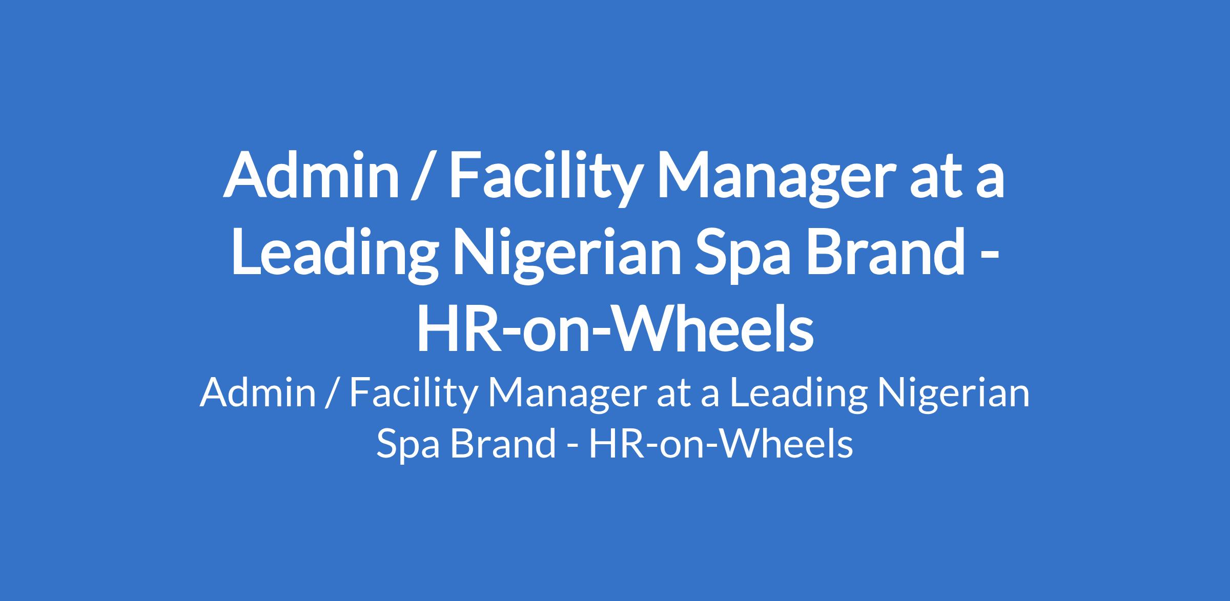 HR-on-Wheels - Our client, a leading Nigerian spa brand is recruiting to fill the position of: Admin / Facility Manager. The position is located in Ikoyi, Lagos State. Salary: N250,000 / Month. Interested candidates should possess a Bachelors Degree in Business Administration or a related field with 24 years experience in admin or facility management (preferably in hospitality or wellness).