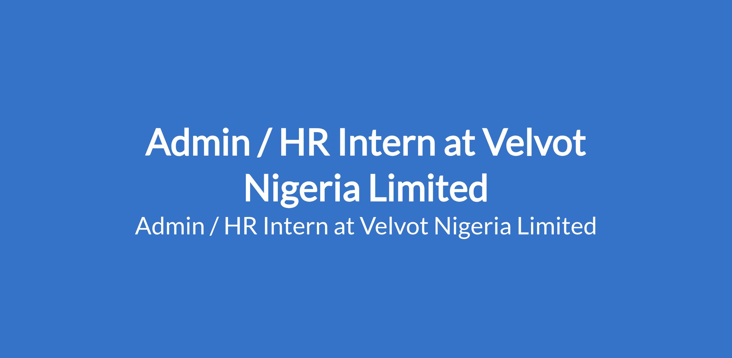 Velvot Nigeria Limited is recruiting to fill the position of: Admin / HR Intern. The position is located in Surulere, Lagos State. Interested candidates should possess relevant qualifications.
