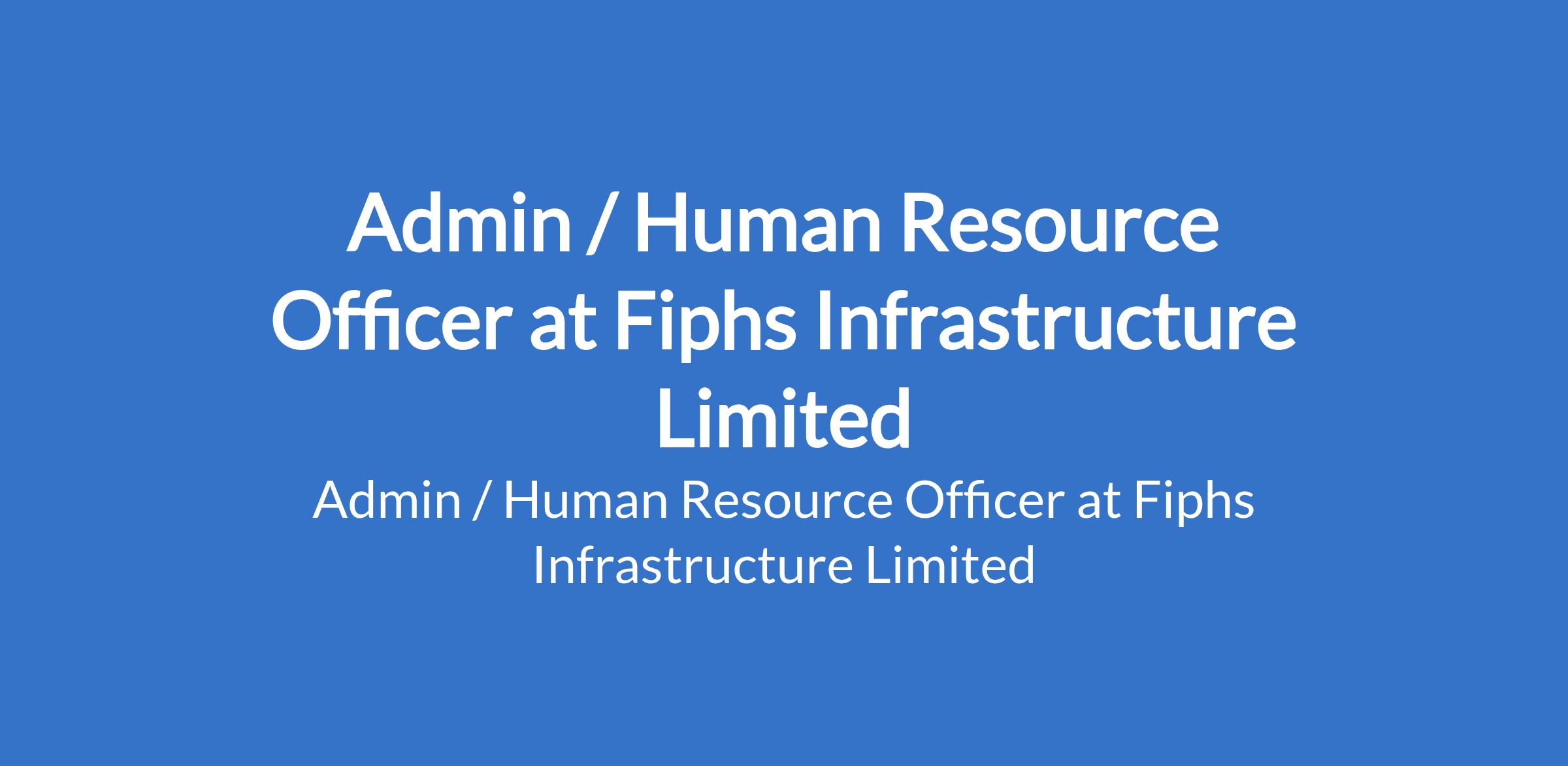 Fiphs Infrastructure Limited is recruiting to fill the position of: Admin / Human Resource Officer. The position is located in Abuja (FCT). Interested candidates should possess a Bachelors Degree in Law, or Human Resources Management with a minimum of 3 years post NYSC in-depth experience of HR practices and Nigerian Labor Laws.