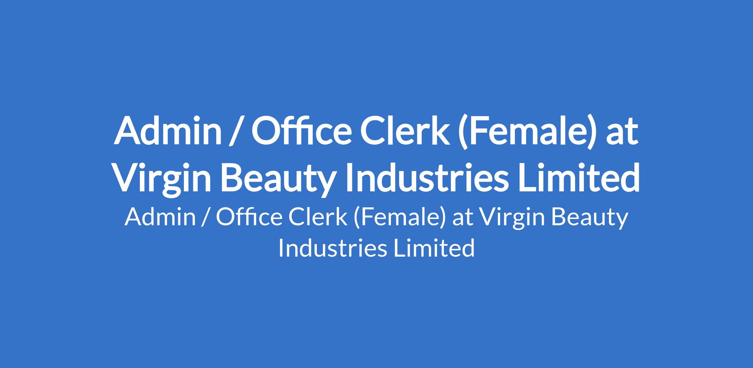 Virgin Beauty Industries Limited is recruiting to fill the position of: Admin / Office Clerk (Female). The position is located in Ikeja, Lagos State. Interested candidates should possess an OND / HND qualification with 3-5 year and above in Office Admin/Clerk.