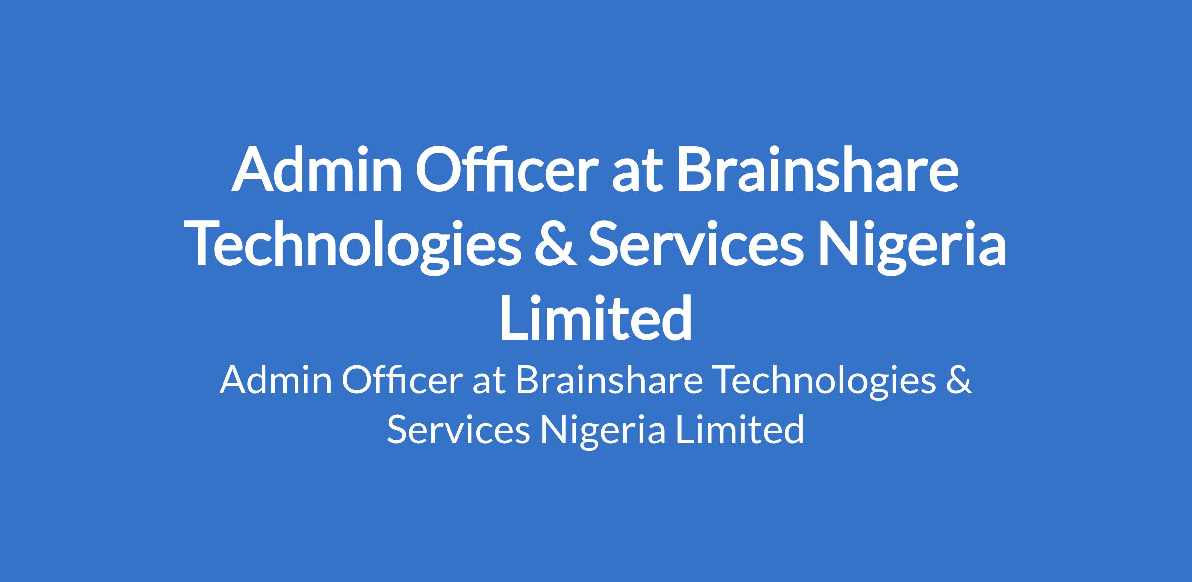 Brainshare Technologies & Services Nigeria Limited is recruiting to fill the position of: Admin Officer. The position is located in Lekki Phase 1, Lagos Island - Lagos State. Salary: N200,000 per month. Interested candidates should possess a Bachelors Degree or HND in any Social Science discipline with 13 years administrative experience.