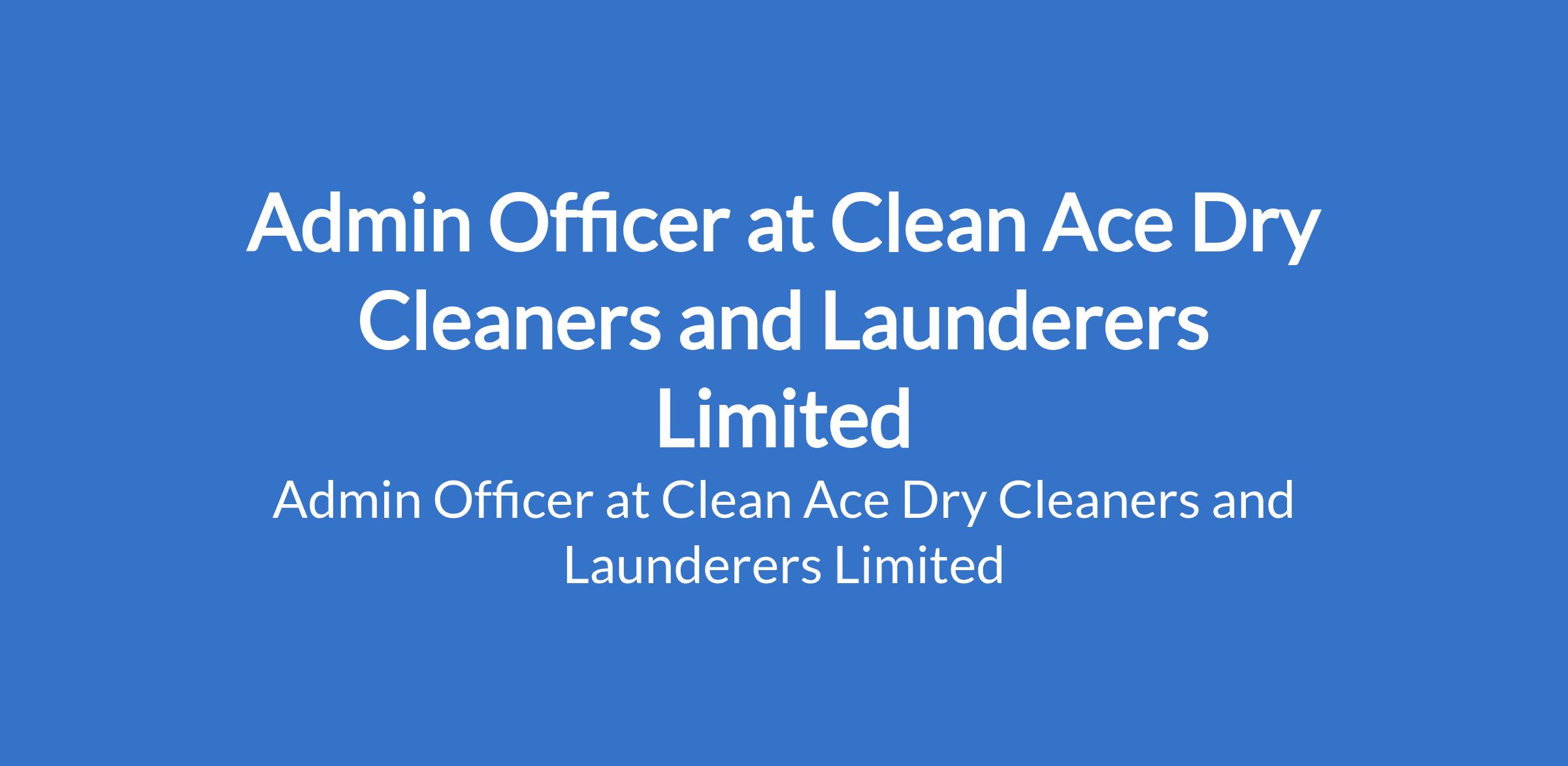 Clean Ace Dry Cleaners and Launderers Limited is recruiting to fill the position of: Admin Officer. The position is located in Lagos State. Salary: N150,000 / month. Interested candidates should possess relevant qualifications with a minimum of 2 years experience in an Admin Officer role and must live in Lagos (Preferably on the Mainland).