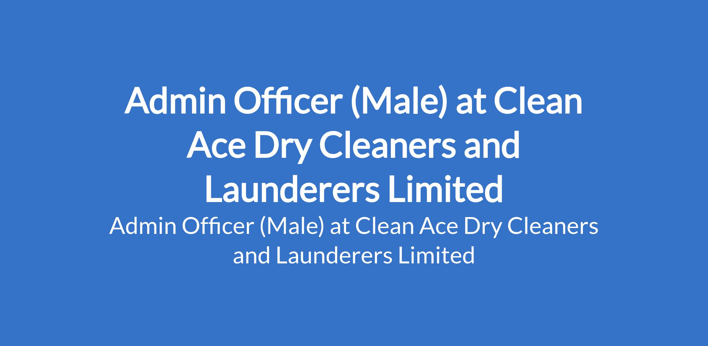 Clean Ace Dry Cleaners and Launderers Limited is recruiting to fill the position of: Admin Officer (Male). The position is located in Lagos State. Salary: N150,000 / month. Interested candidates should possess relevant qualifications with a minimum of 2 Years Experience in an Admin Officer role.