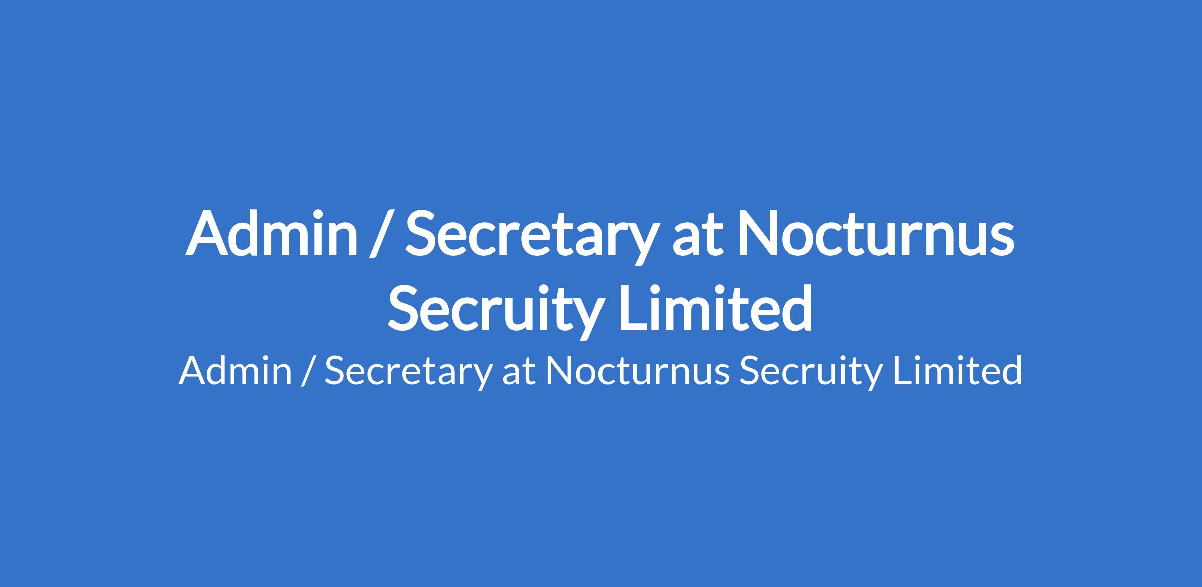 Nocturnus Secruity Limited is recruiting to fill the position of: Admin / Secretary. The position is located in Port Harcourt, Rivers State. Interested candidates should possess a B.Sc / HND or equivalent with three years of experience within an office setting preferred.
